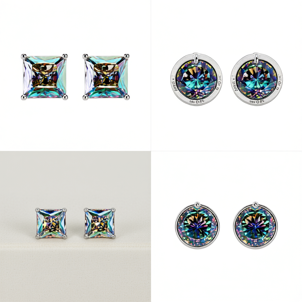 Dara Classic 925 Silver Stud Earrings With Rainbow Quartz Crystal Geometric Square Bezel Setting For Women Everyday Wear