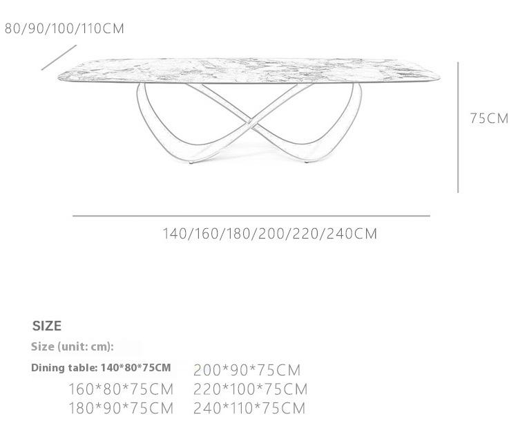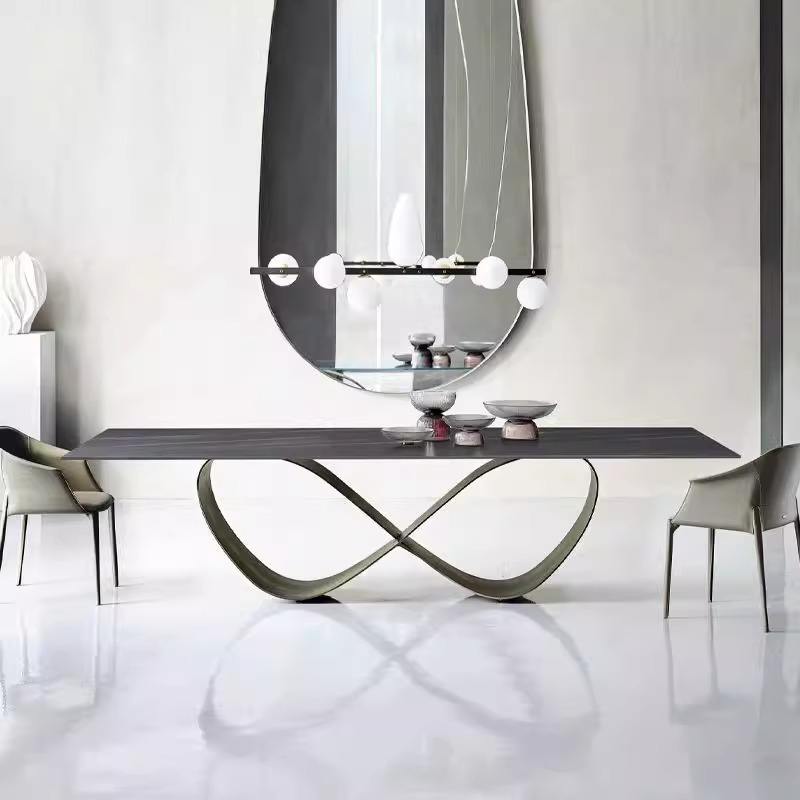 Dareko Luxury 8 Word Design Rectangular Dining Table Butterfly Shape Base Dining Table 6 8 10 Seater Sintered Stone Dining Table