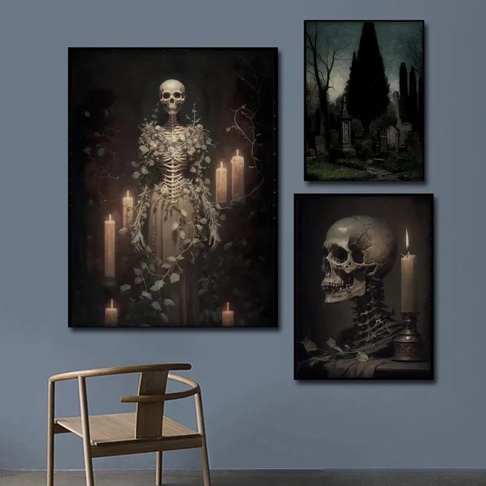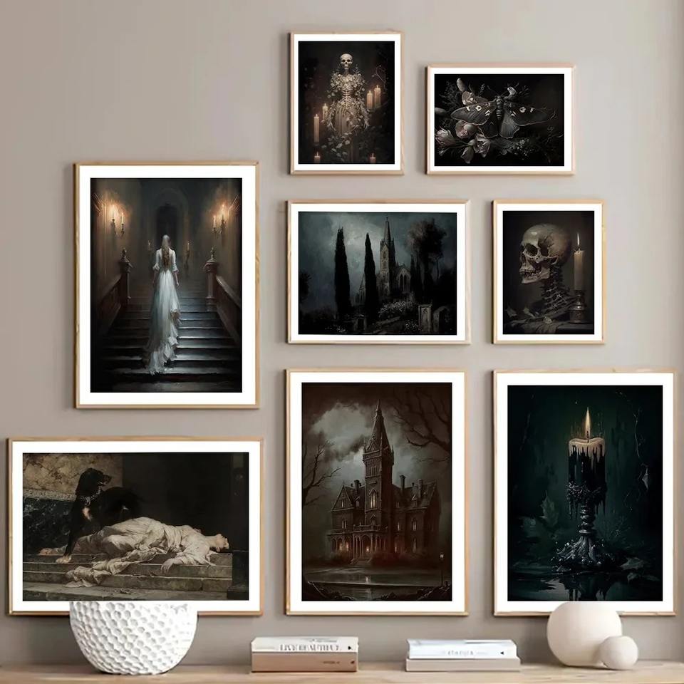 Dark Academia Gothic casa stregata fantasma sposa tela pittura astratta Art Deco soggiorno decorazione da parete arte Poster stampe