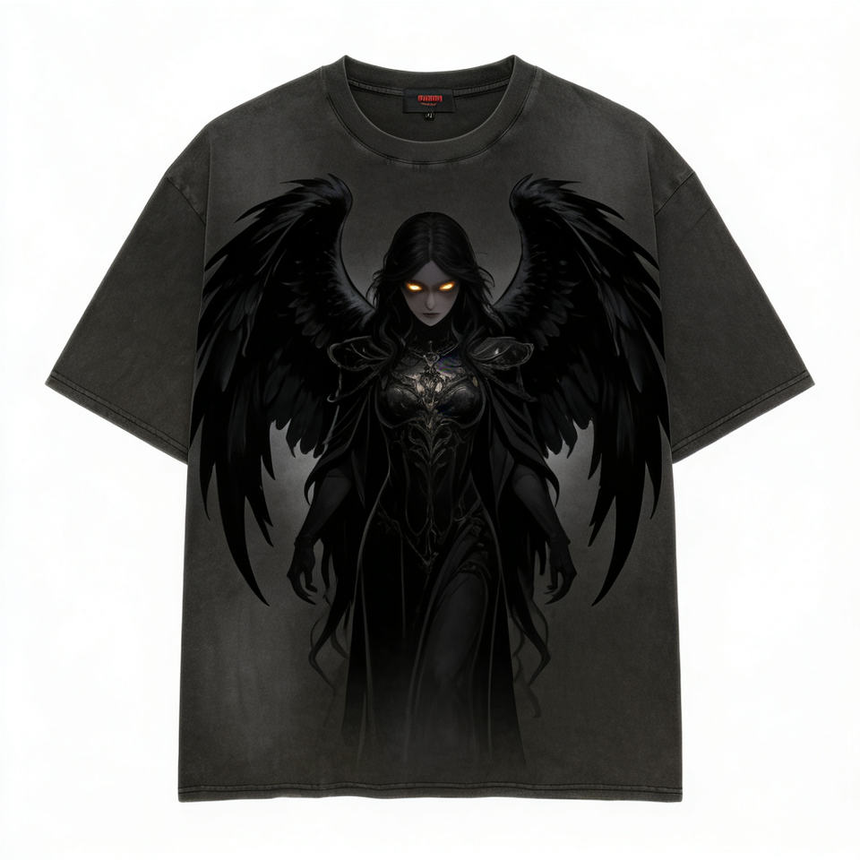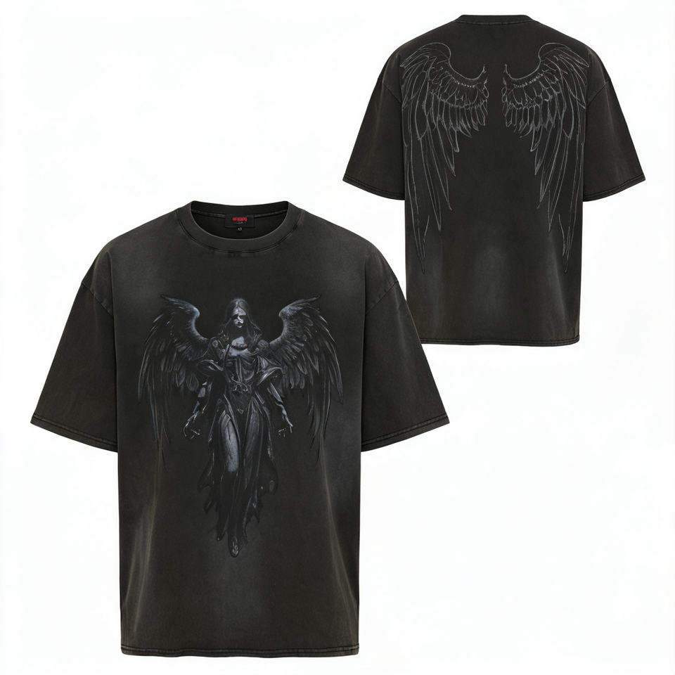 T-shirt Dark Angel da uomo oversize in cotone nero, moda gotica fantasy