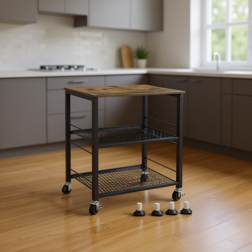 Carrello da Cucina a 2 Ripiani in Metallo con Ruote, Design Moderno Nero per Isole e Carrelli da Cucina