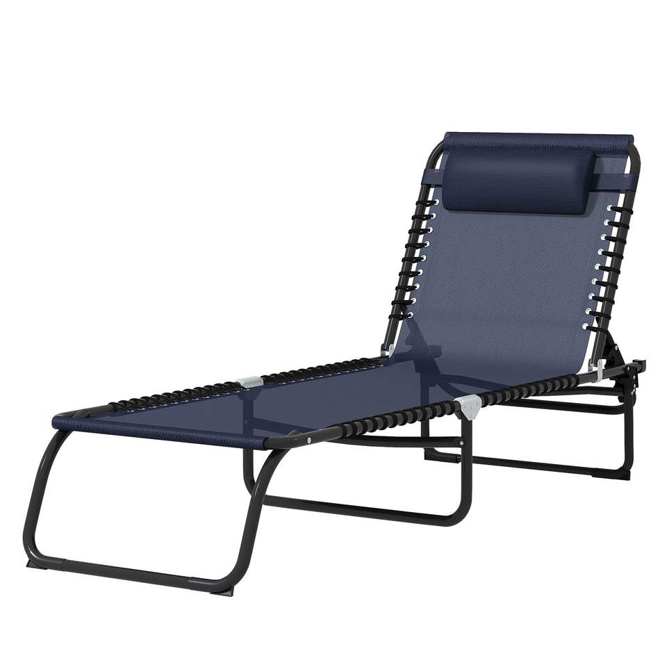 Sdraio Pieghevole Blu Scuro per Piscina, 4 Posizioni Reclinabili, Cuscino Posteriore, Seduta in Rete Traspirante e Elastica per Uso in Spiaggia