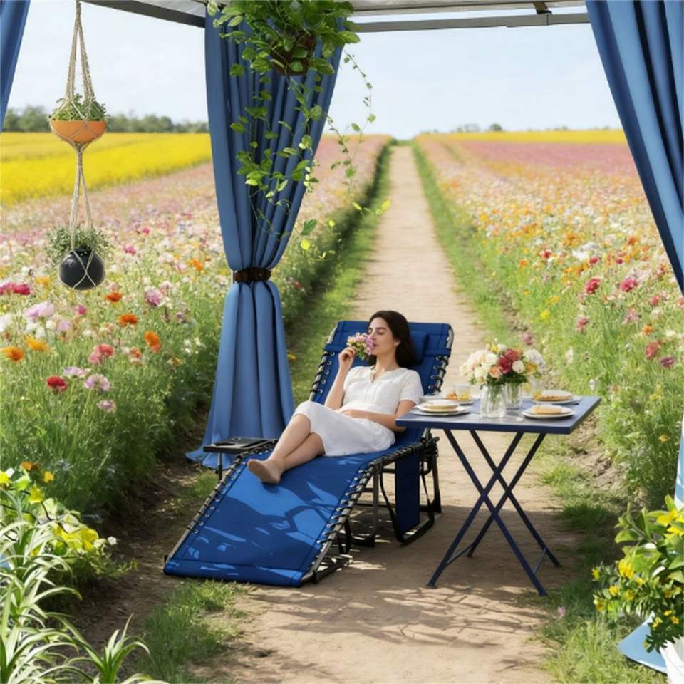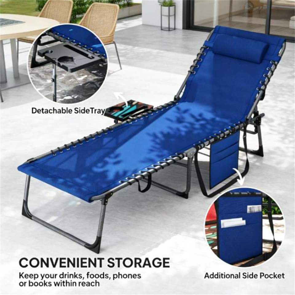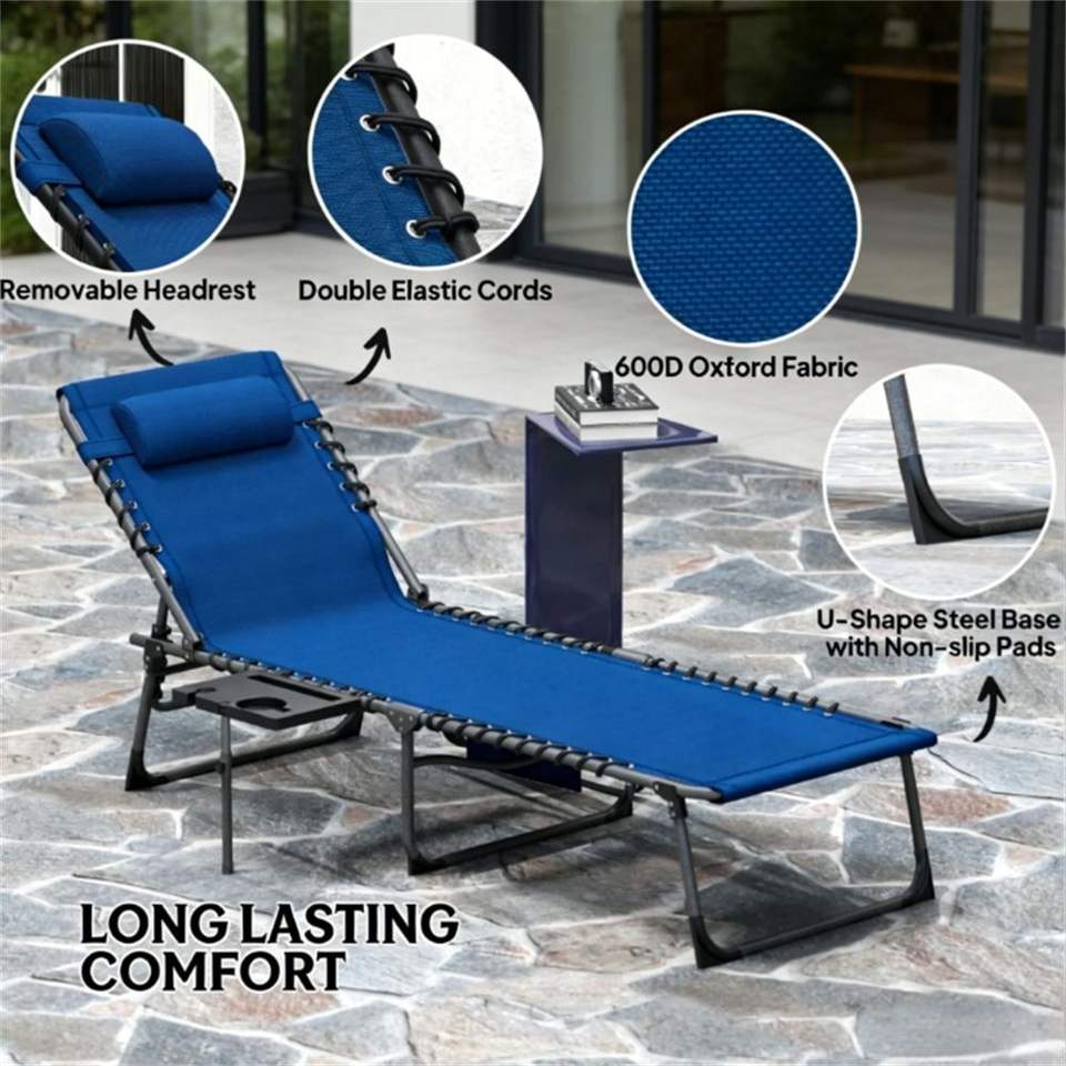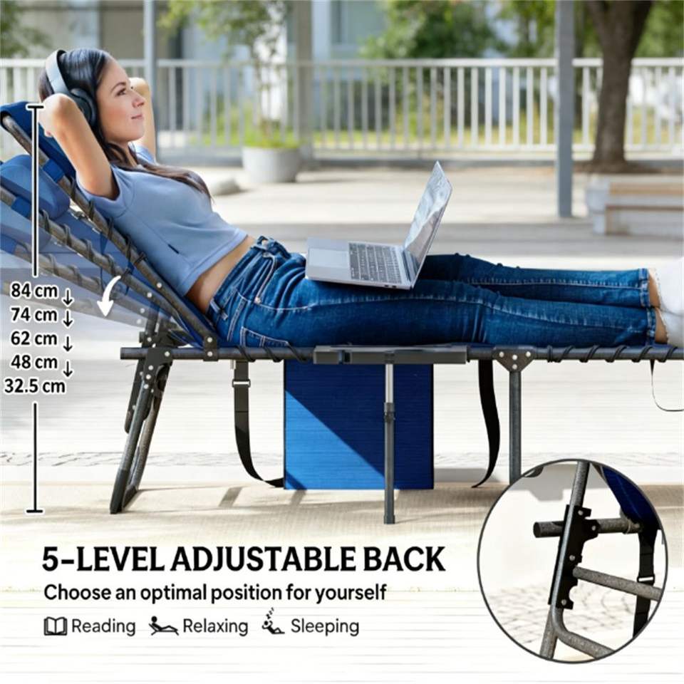 Sedia a Sdraio Pieghevole Blu Scuro per Uso Esterno in Giardino e Cortile