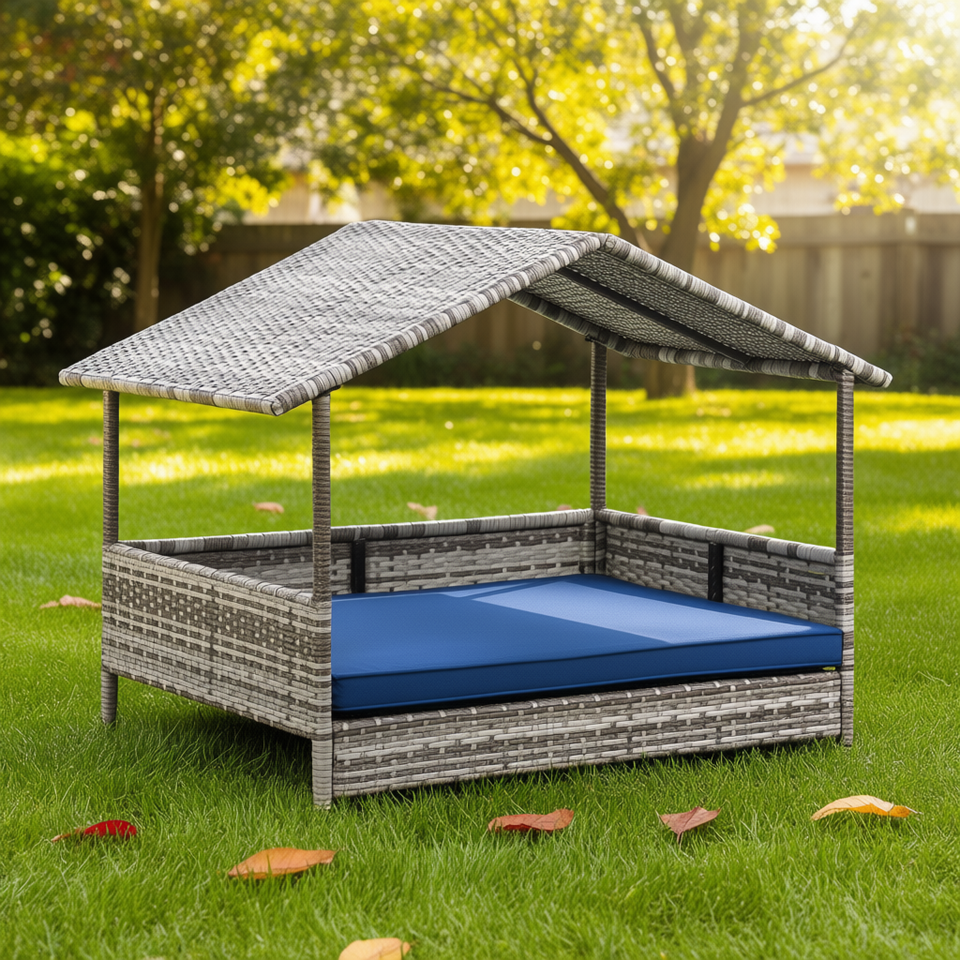 Cuccia per Animali Domestici in Vimini Blu Scuro Resistente all'Acqua con Cuscino Rimovibile Rialzata per Uso Interno ed Esterno