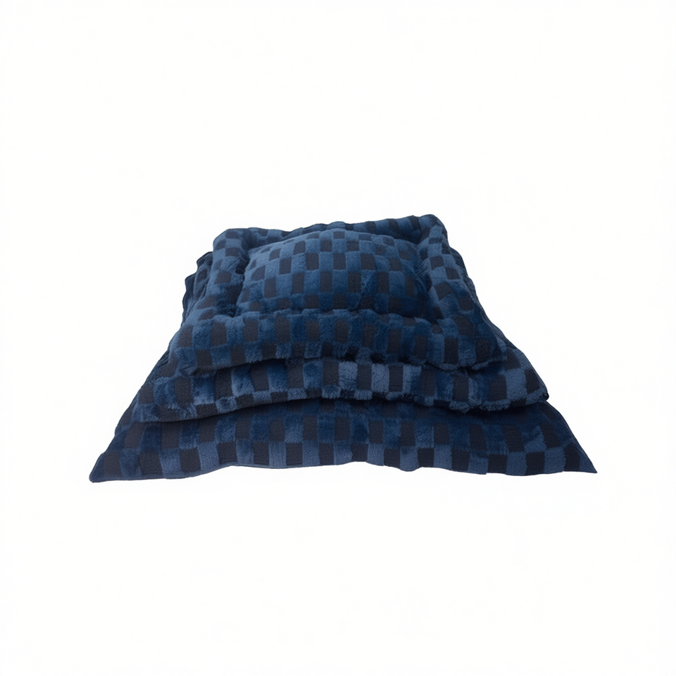 Dark Blue Rabbit Hair Beauty Grid Dog Pad Set Three-Piece Premium Pet Beds