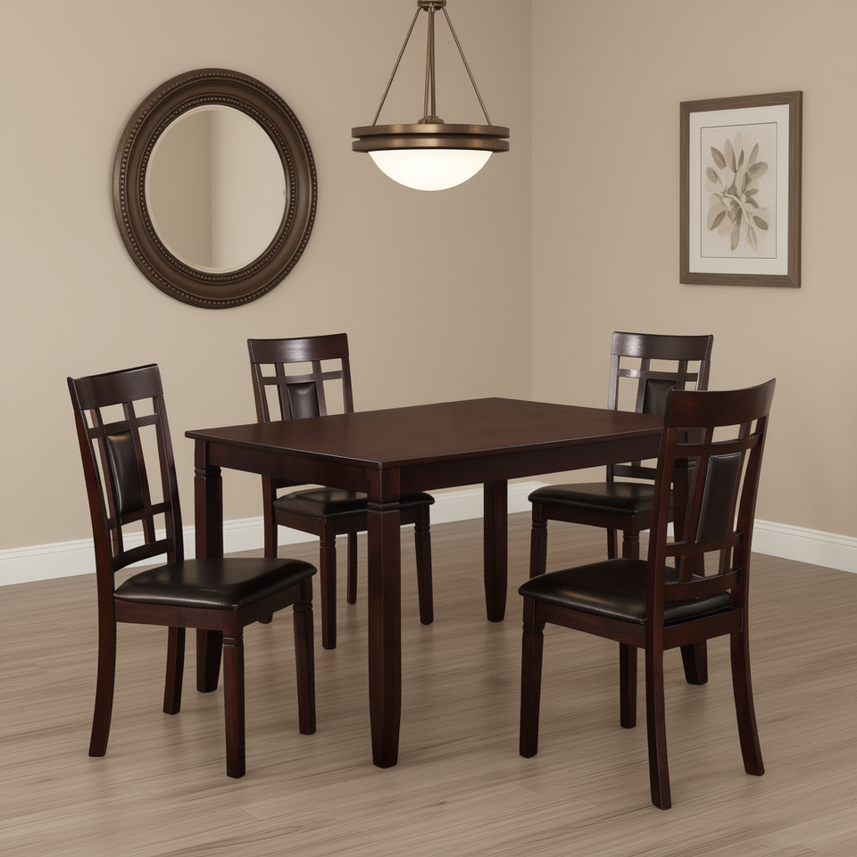 Set da Pranzo in Legno Marrone Scuro 5 Pezzi, Sedie Tradizionali con Schienale Incrociato, Design Moderno, Arredamento Durevole per la Casa