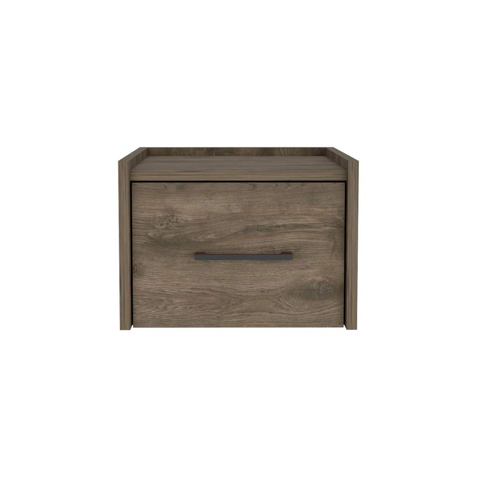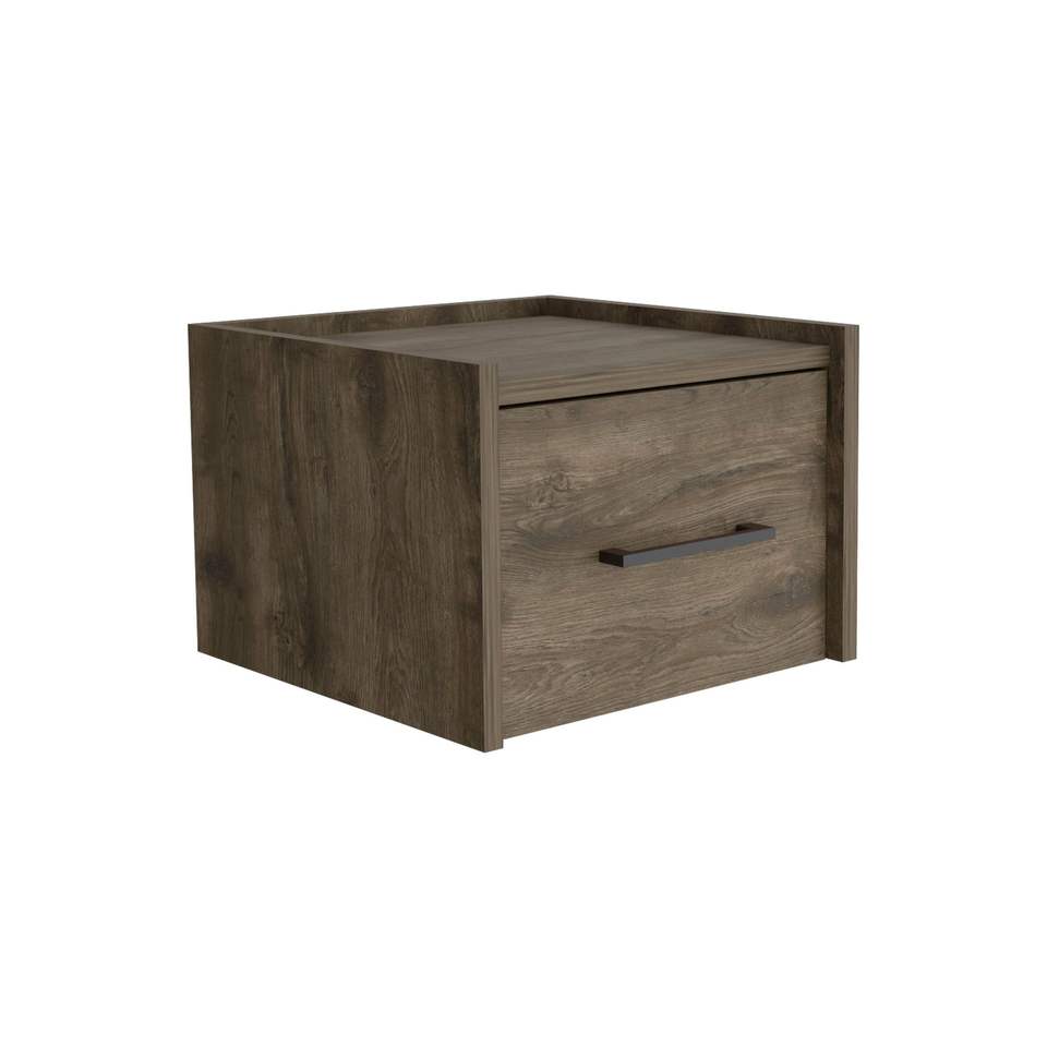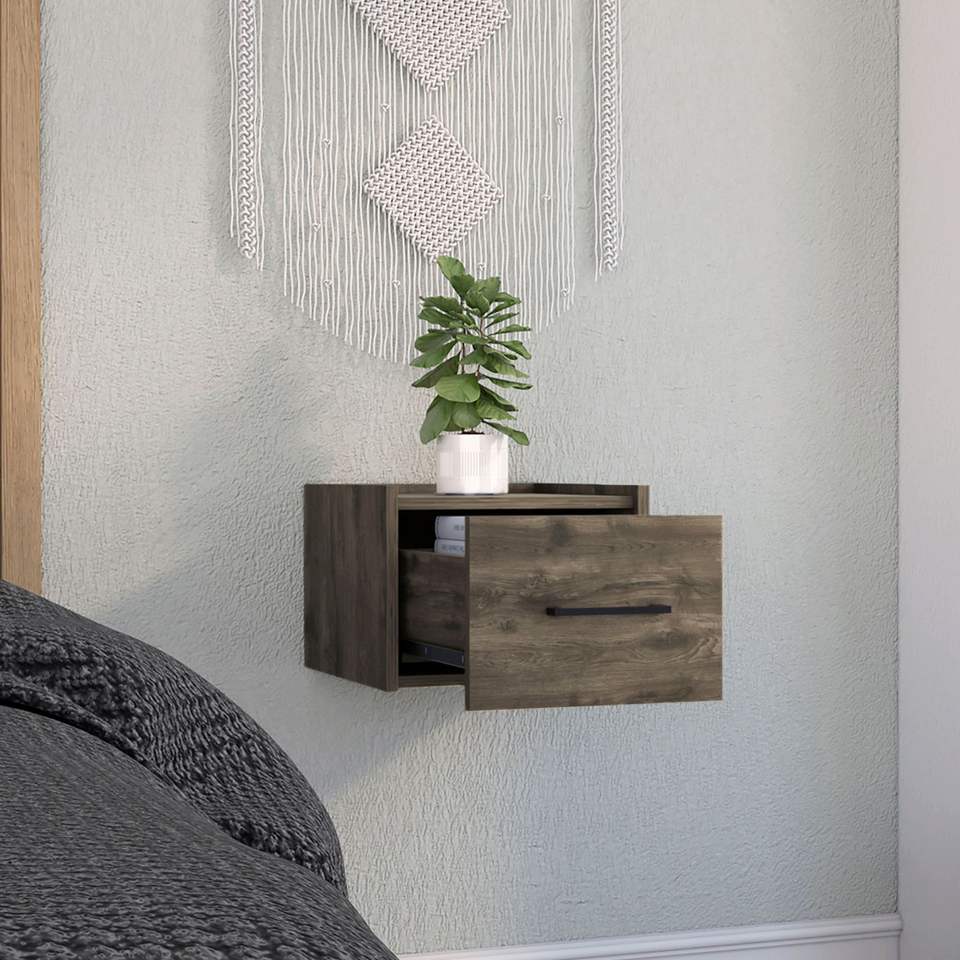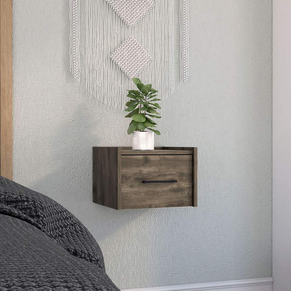 Comodino Sospeso Marrone Scuro con Cassetto Singolo e Maniglia, Tavolino da Parete e Tavolino Laterale per Camera da Letto