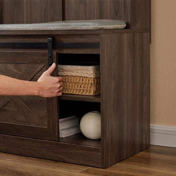 Dark Brown Column Coat Rack with Storage Shoe Cabinet Wall Hooks & Coat Racks Product