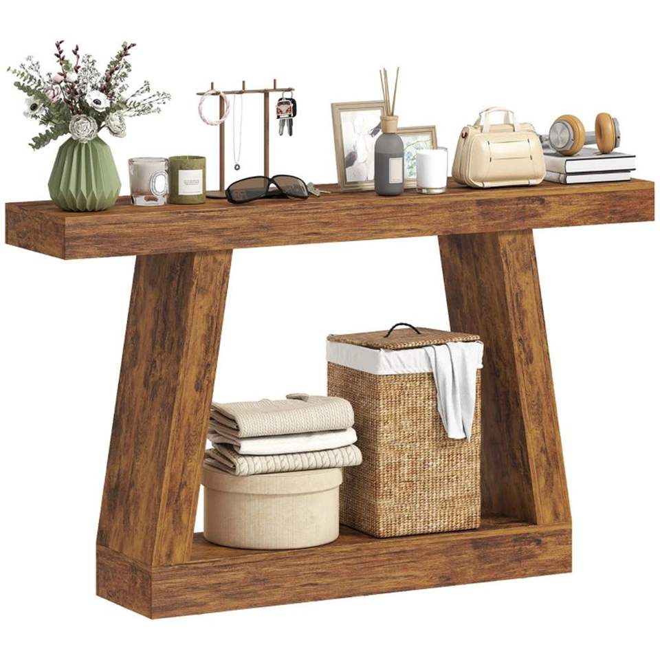 Consolle Marrone Scuro con Vano Portaoggetti per Ingresso o Corridoio, Ideale per Ufficio Domestico