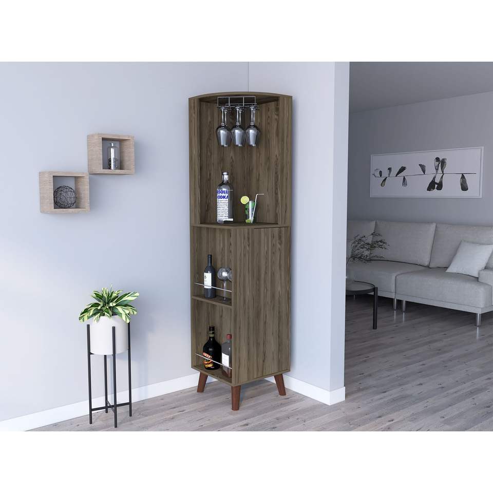 Mobile Bar Angolare Marrone Scuro per Soggiorno Serie Plex