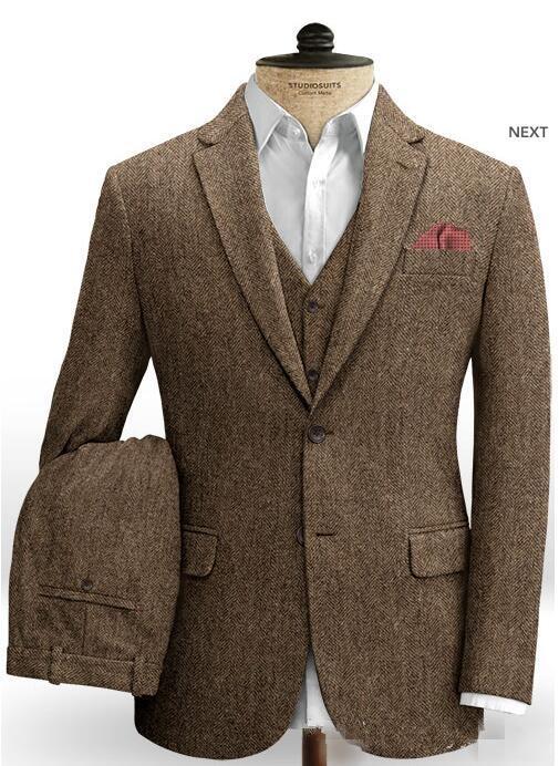 Smoking da Matrimonio Marrone Scuro, Completi da Uomo in Tweed a Spina di Pesce, Abiti da Sposo, Completo da Testimone, Blazer da Uomo, Abiti su Misura