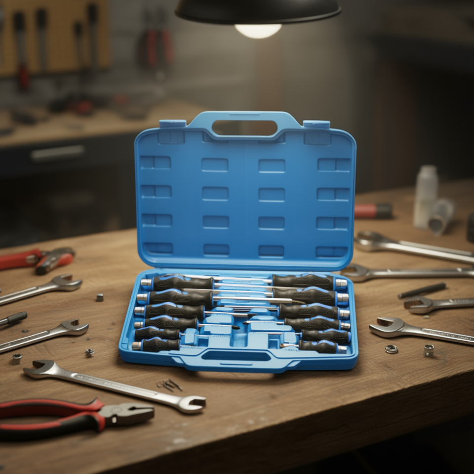 Set di Cacciaviti Magnetici Dark Duck da 12 Pezzi, Punte Phillips e Piatte in Acciaio, Grado Industriale con Custodia