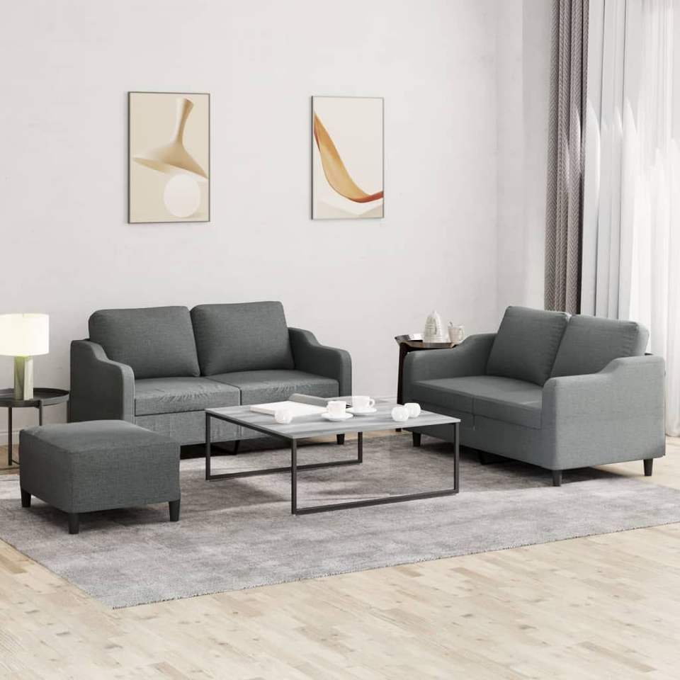 Set di Divani in Tessuto 100% Poliestere Grigio Scuro con Struttura in Metallo e Compensato Textilene per Soggiorno
