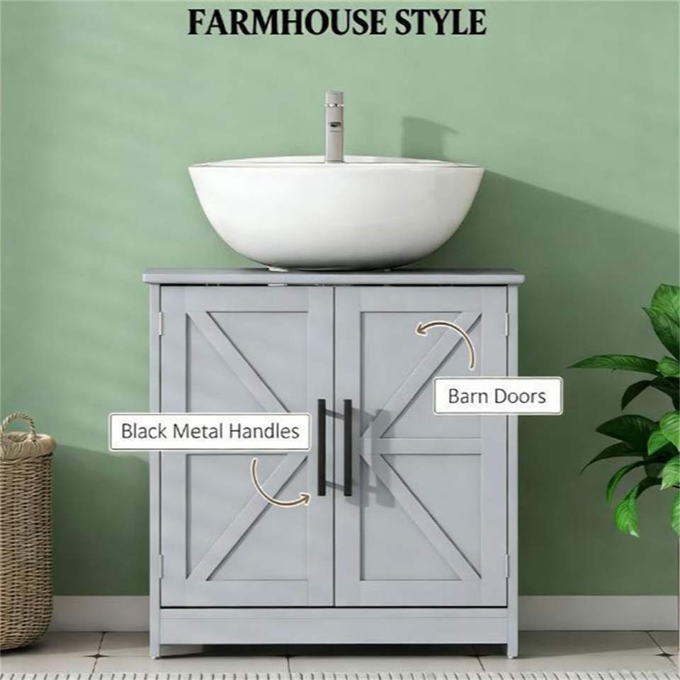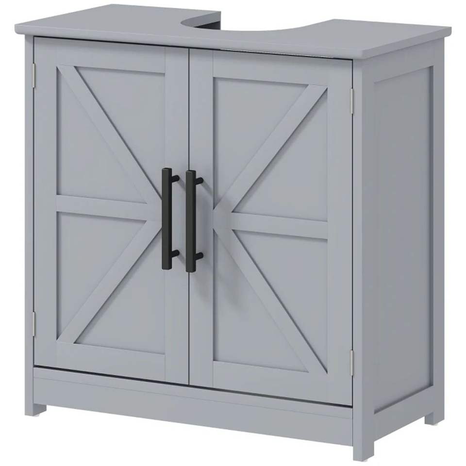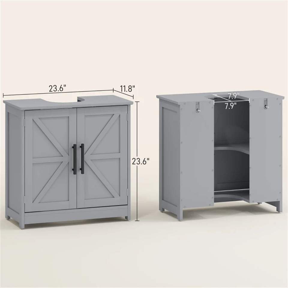 Mobile Bagno Grigio Scuro con Lavabo e Armadietto Contenitore