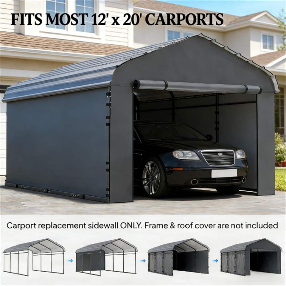 Pannello Laterale di Ricambio Grigio Scuro per Tettoia Auto, Copertura Laterale per Gazebo Auto
