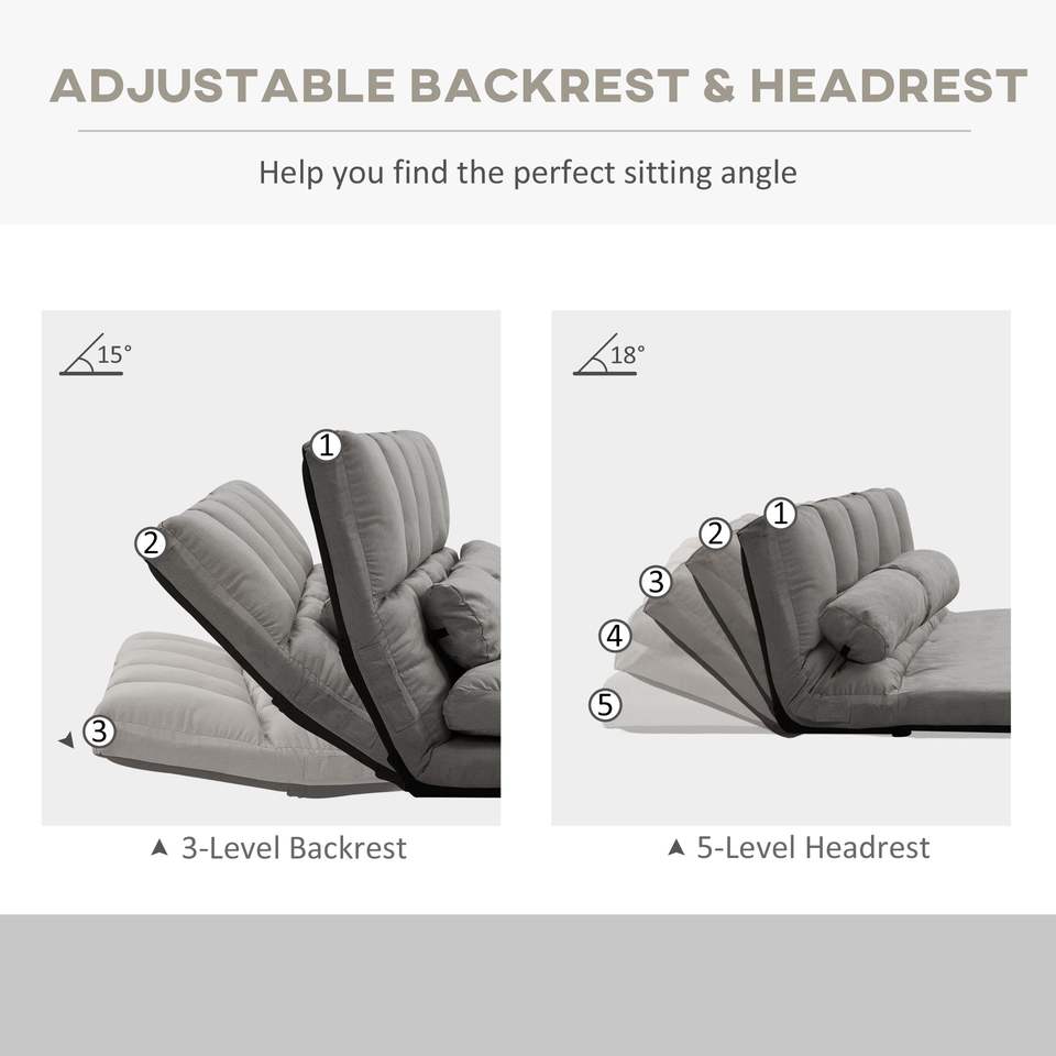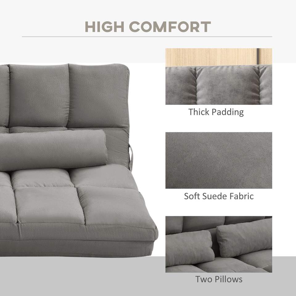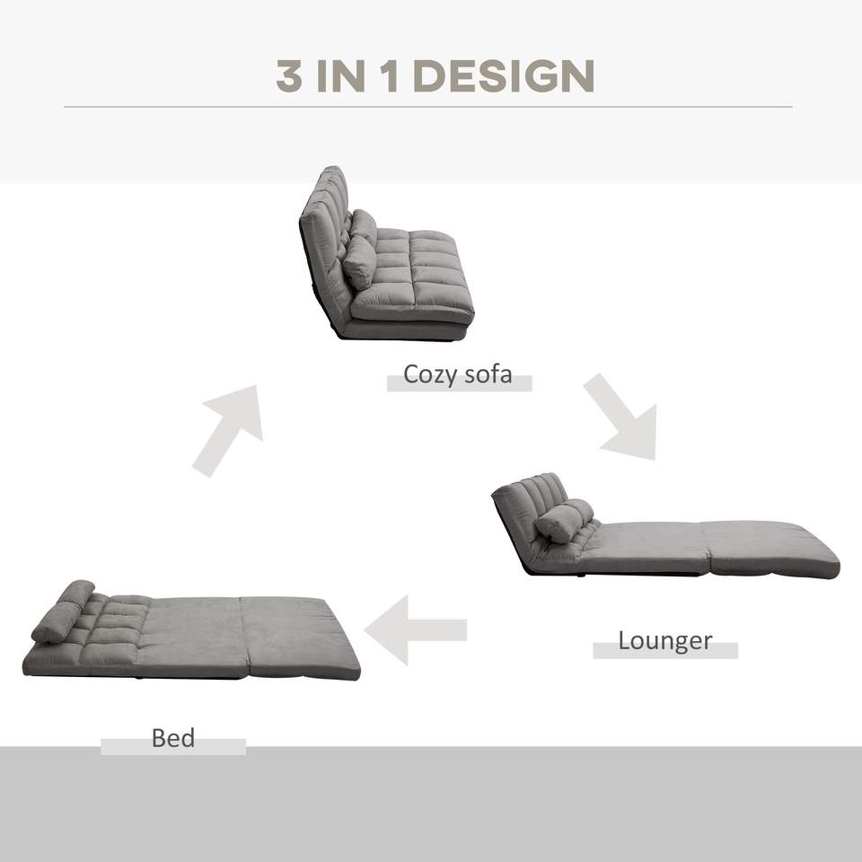 Divano Letto Reclinabile Grigio Scuro con Comfort Regolabile e Cuscini, Divano Letto Regolabile da Pavimento