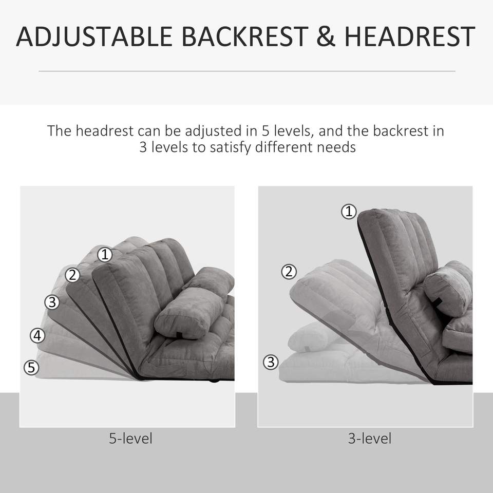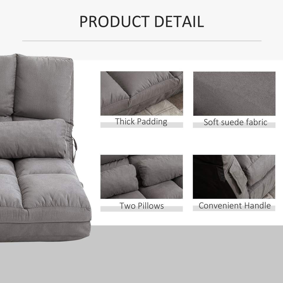 Divano Letto Convertibile Grigio Scuro con Schienale e Poggiatesta Regolabili, Chaise Longue Pieghevole per Ospiti con 2 Cuscini