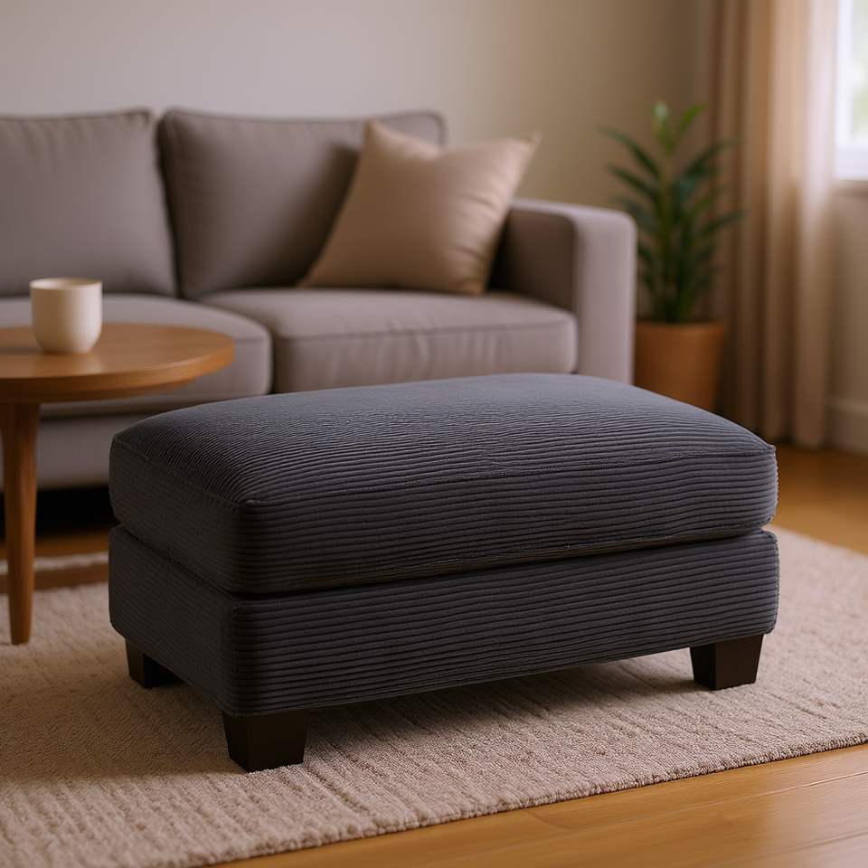 Dark Gray Corduroy Ottoman Soft Cushion Living Room Furniture Wood Legs Modern Stool