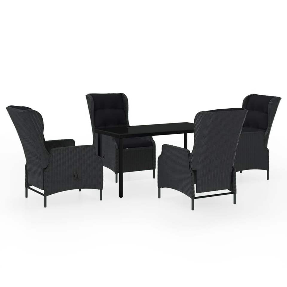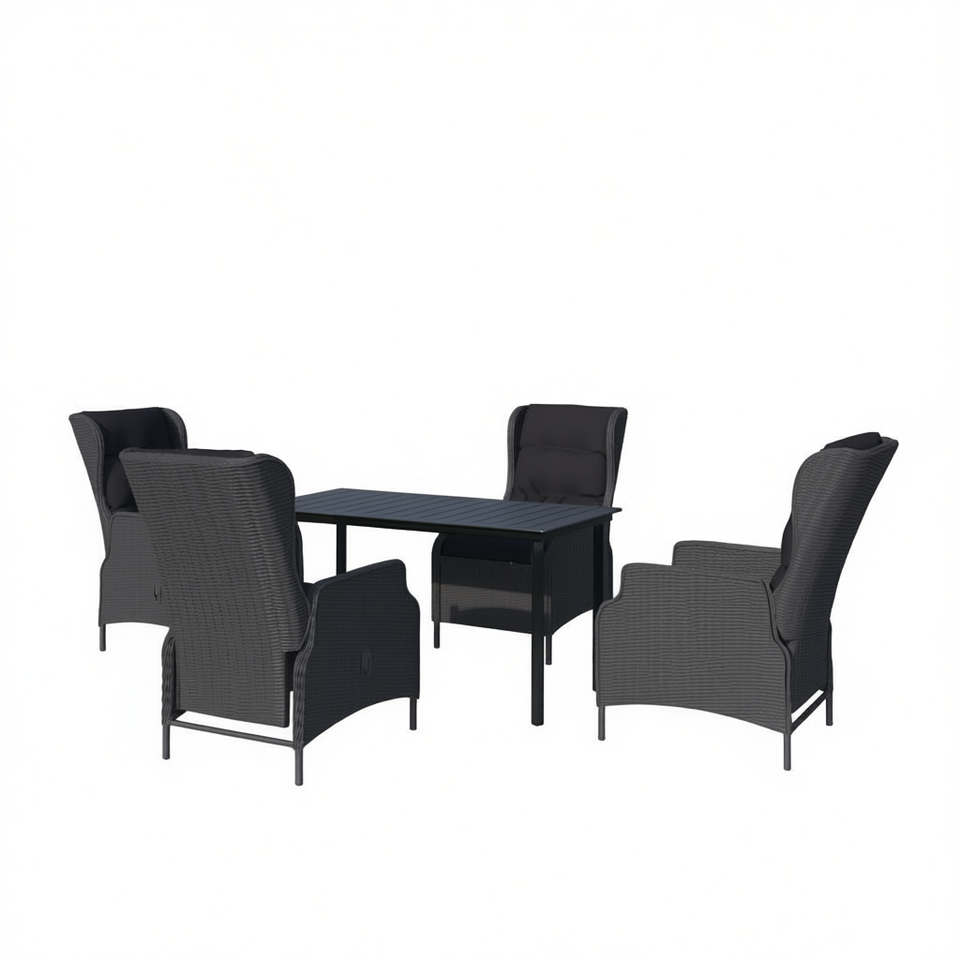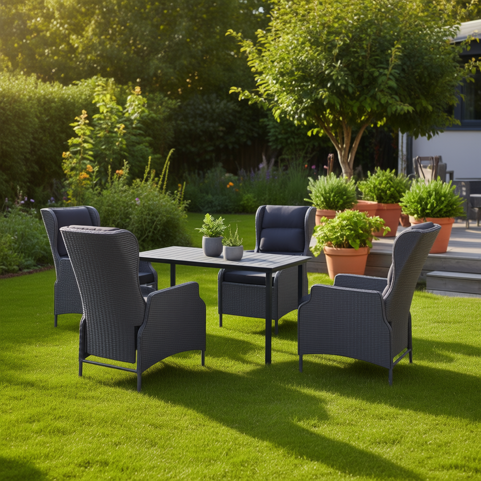 Set da Pranzo da Giardino Grigio Scuro per 4 Persone, Mobili da Esterno in Rattan Resistenti alle Intemperie, Design Contemporaneo
