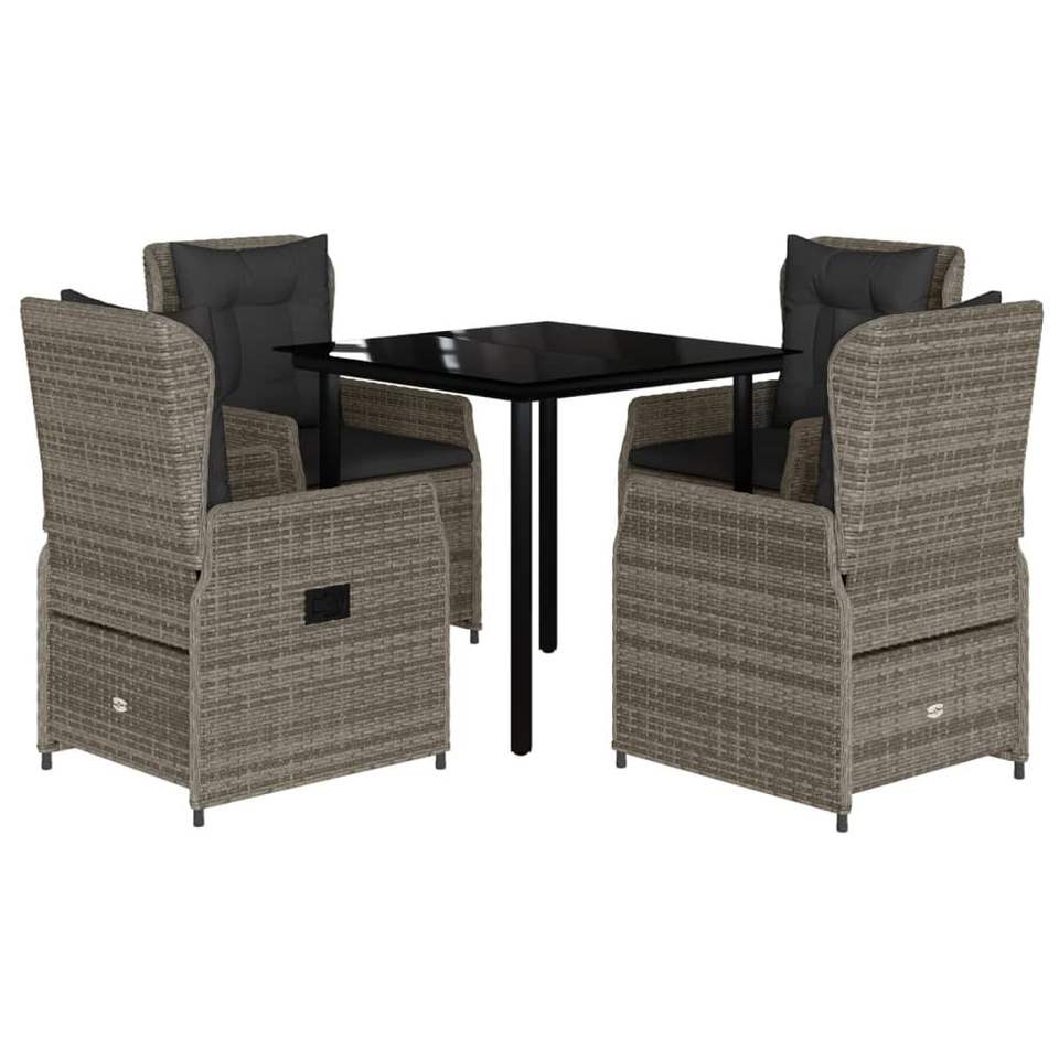 Set da Pranzo da Giardino in Rattan Grigio Scuro per 4 Persone, Resistente alle Intemperie, Arredamento da Esterno in Stile Contemporaneo
