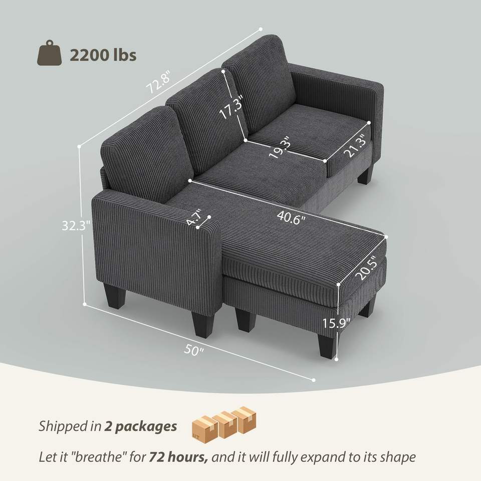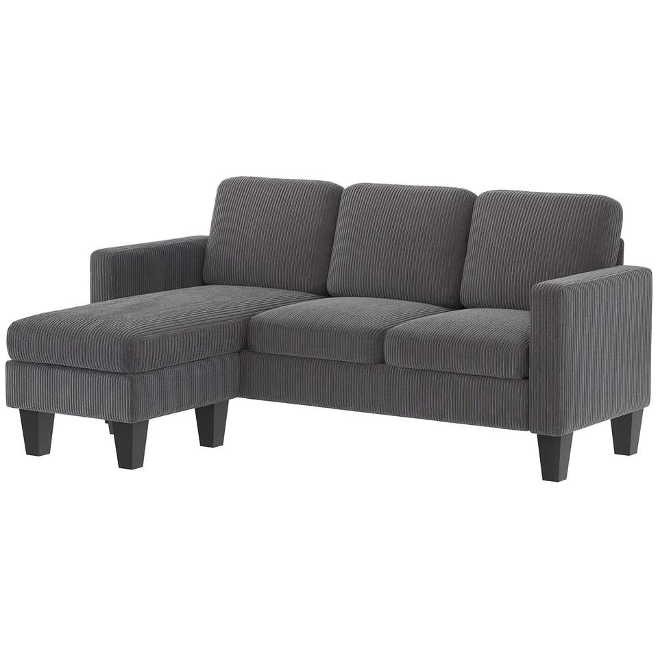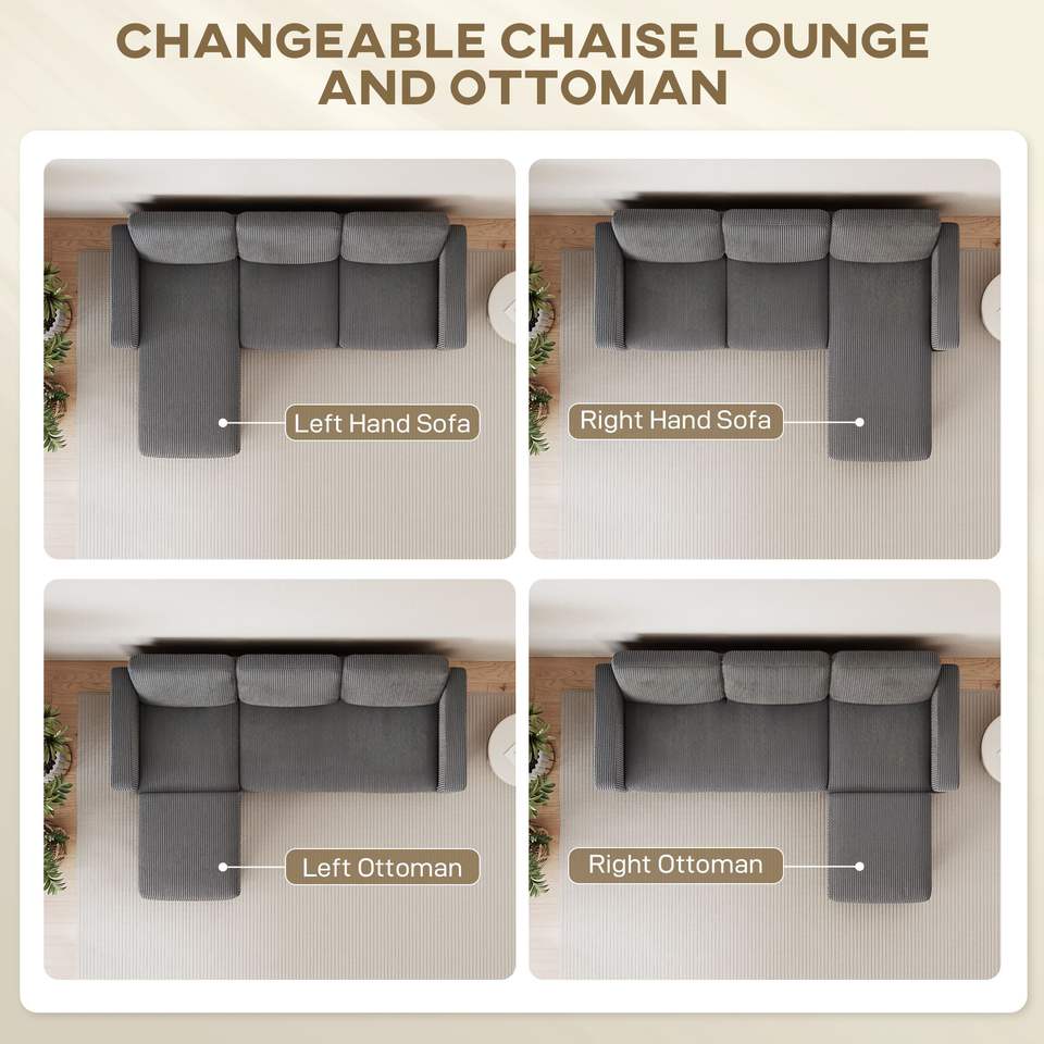 Divano Componibile a L Grigio Scuro con Chaise Longue Reversibile o Pouf per Soggiorno Modello D0100XF2L6Y