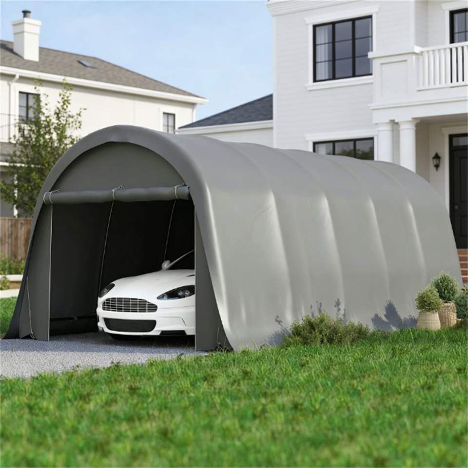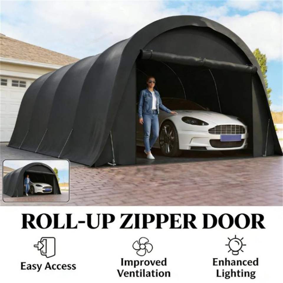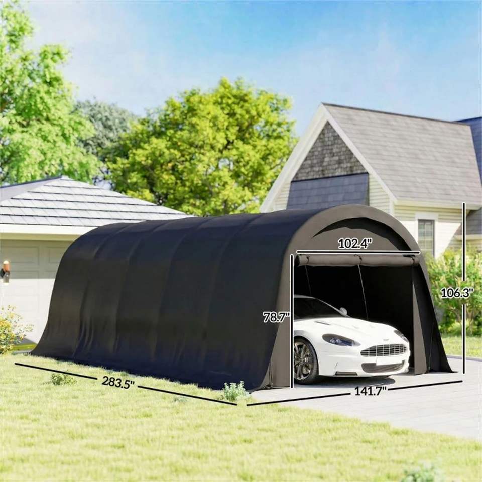 Tettoia Portatile Grigio Scuro per Auto, Riparo Antipioggia Facile da Montare