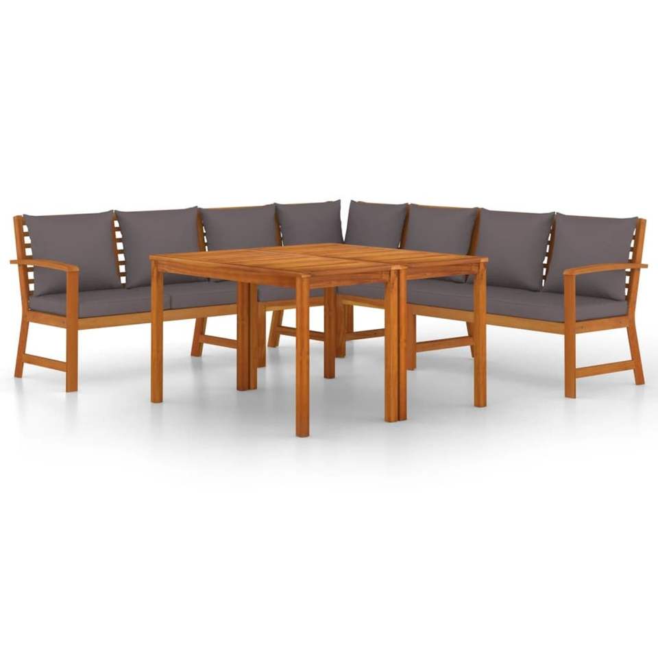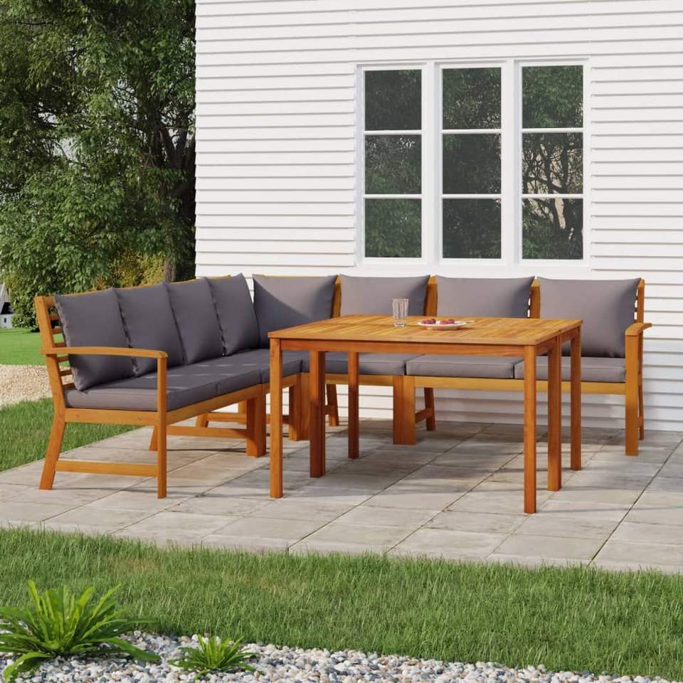 Set da Pranzo Modulare per Esterni in Legno Massello di Acacia Grigio Scuro, Misura Media, per Arredamento da Giardino