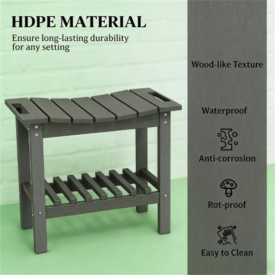 Panca Contenitore Grigio Scuro con Tavolino Laterale, Tavolino da Caffè e Panca Doccia in un Unico Design