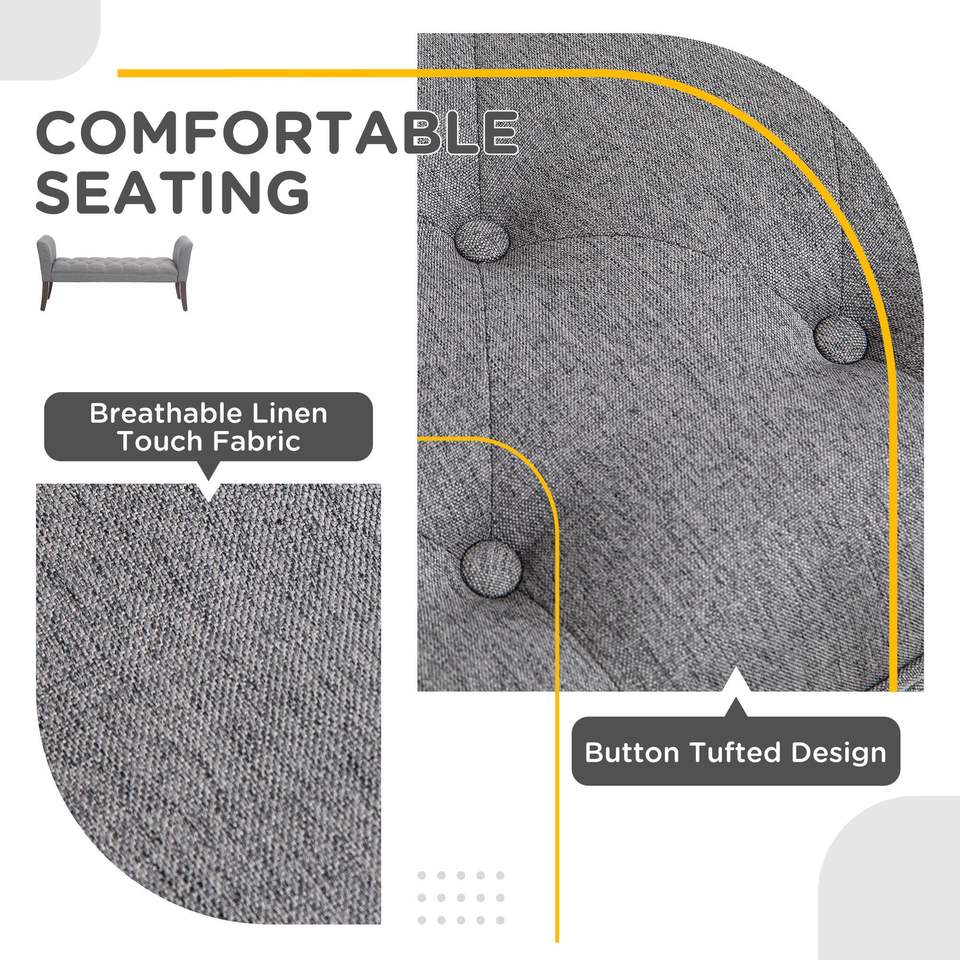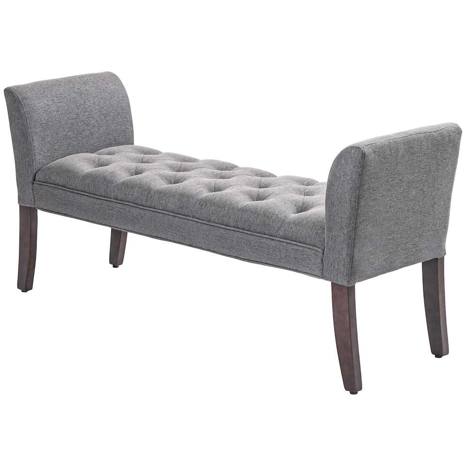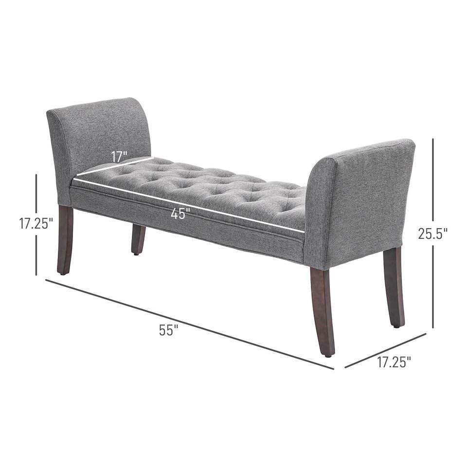 Dark Gray Upholstered Bedroom Entryway Bench Button Tufted Design with Solid Wood Arms End Bed Bench for Living Room Furniture