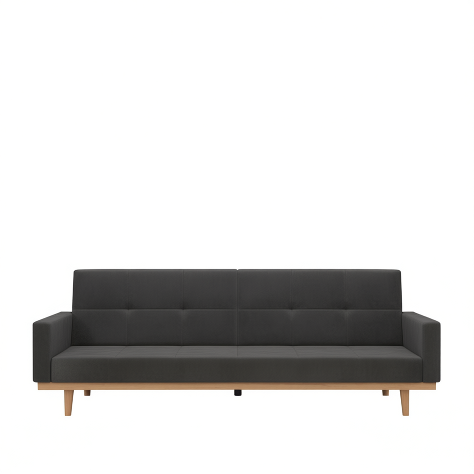 Divano letto in velluto grigio scuro a 2 posti con struttura in legno, design moderno, mobili per soggiorno