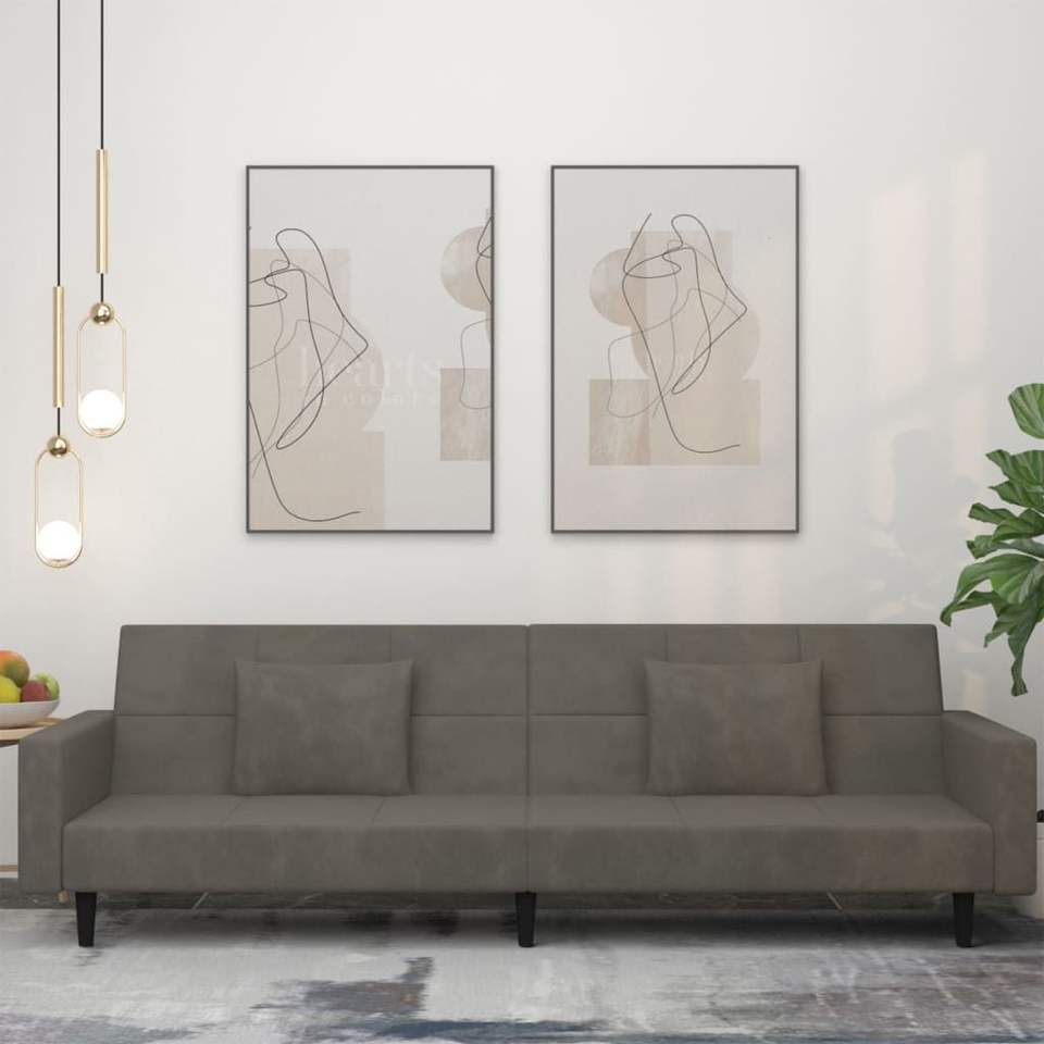 Dark Gray Velvet 2-Seater Sofa Bed 100% Polyester with Wood & Plastic Accents
