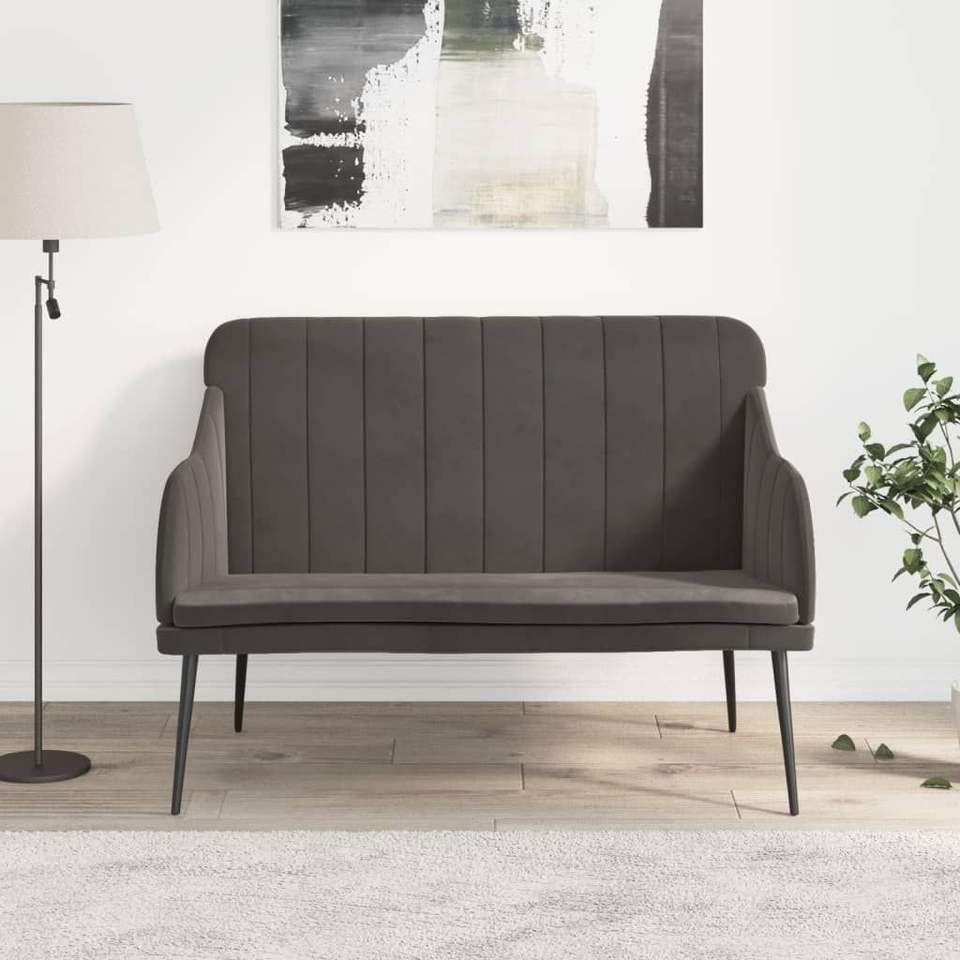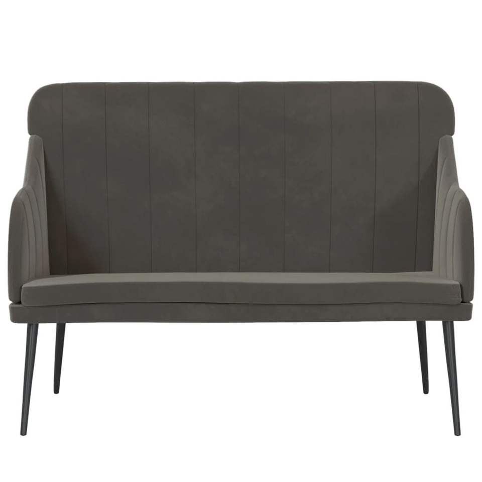 Dark Gray Velvet Fabric Metal Bench Medium Plywood for Living Room Sofas