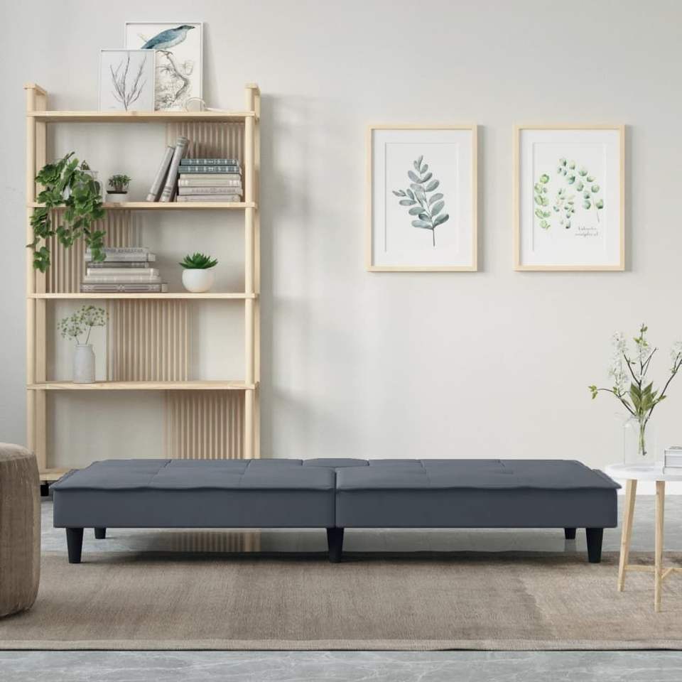 Divano letto in velluto grigio scuro con portabicchieri