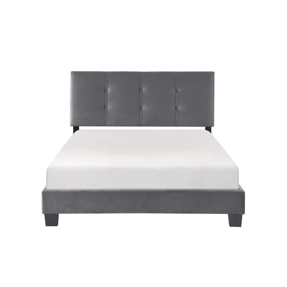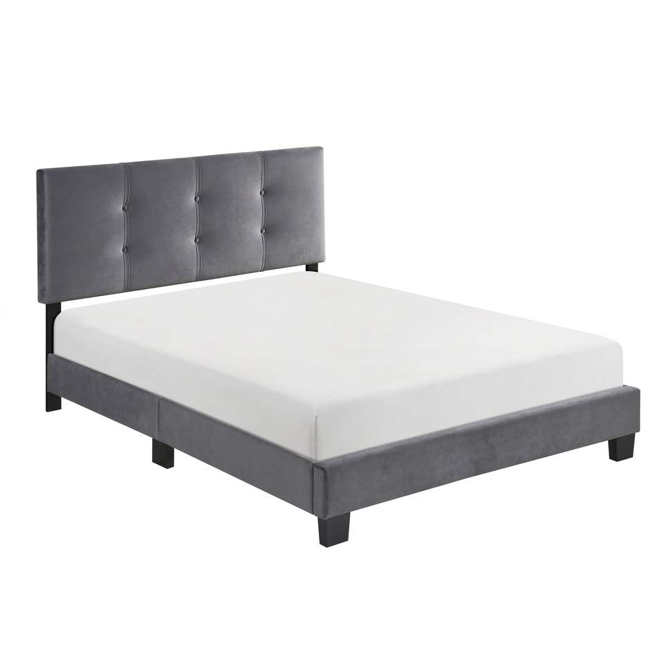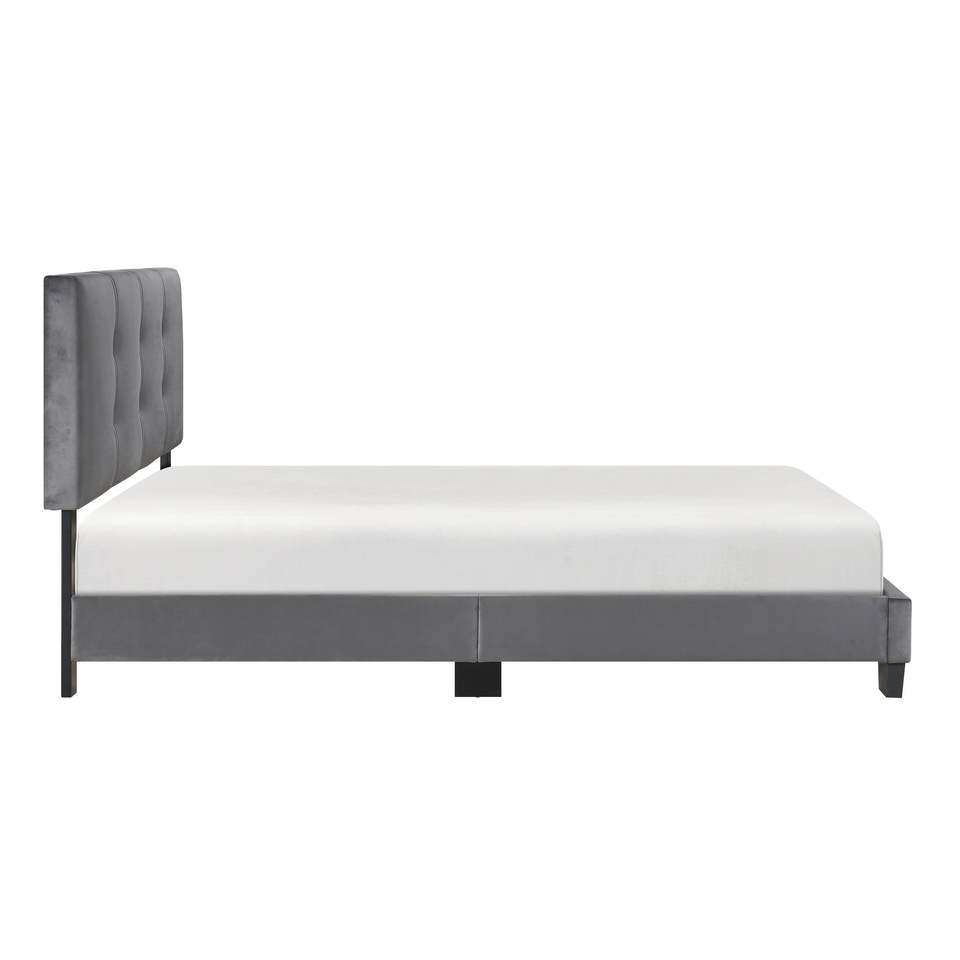 Testiera Regolabile in Altezza Rivestita in Velluto Grigio Scuro, Letto Matrimoniale con Piattaforma in Legno Massello, Design Trapuntato a Bottoni, 1 Pezzo