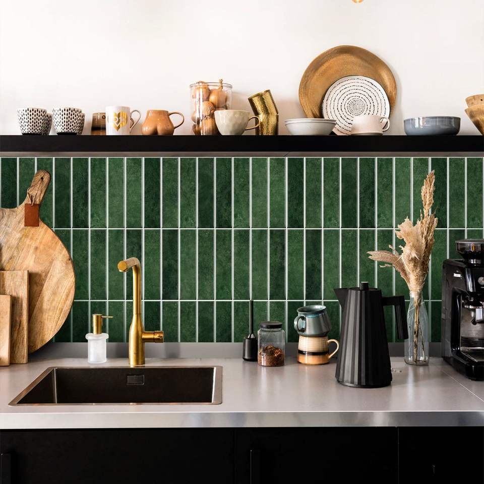 Kit di Piastrelle Adesive 3D Vintage Verde Scuro 12x12 Pollici, 10 Pezzi, Piastrelle Autoadesive Resistenti al Calore
