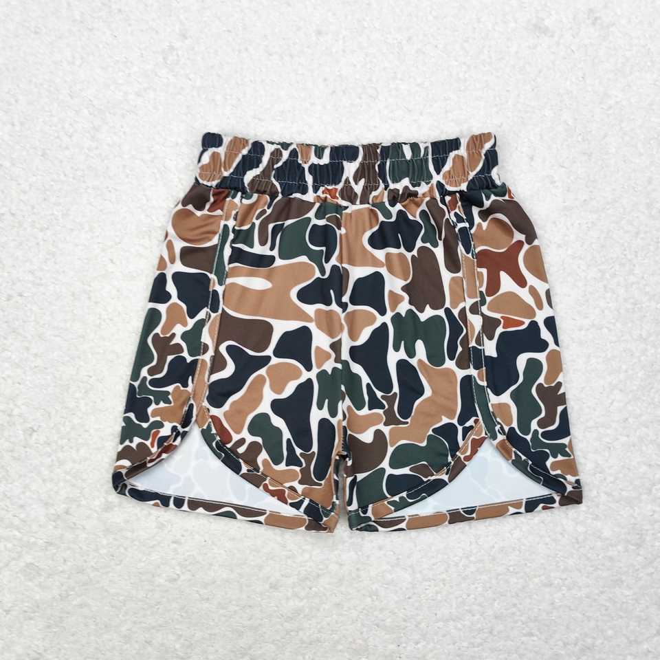 Dark Green Brown Camouflage Print Shorts for Girls Elastic Waist Mid Summer Casual Boutique Clothes-Wholesale Kids Clothing