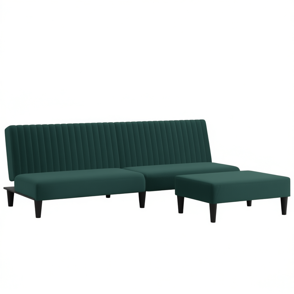 Set Divano Compatto in Velluto Verde Scuro, 100% Poliestere, Struttura in Legno, Stile Mid-Century Modern, a Forma di L, Arredamento per Soggiorno