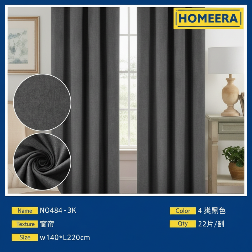 Dark Grey 140x228cm Polyester Curtains with 8 Grommets Home Decor Valances