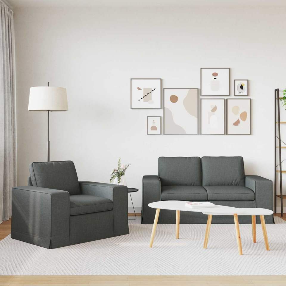 Dark Grey 182 X 80 X 82 cm Fabric 2-Piece Living Room Sofa Set