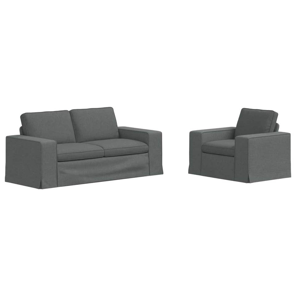 Set da Soggiorno in Tessuto Grigio Scuro a 2 Pezzi, Divano e Poltrona, Design Moderno Minimalista con Rivestimento