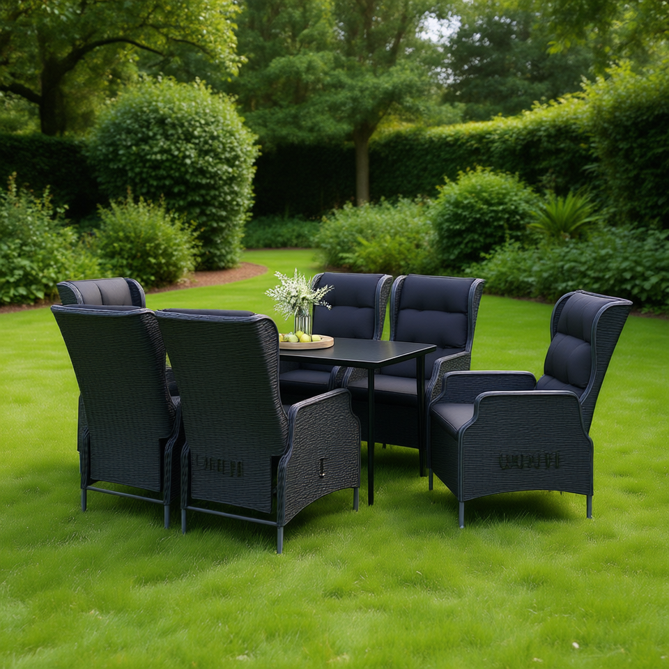 Set da Pranzo da Giardino in Rattan Grigio Scuro per 6 Persone, Resistente alle Intemperie, Stile Contemporaneo con Struttura in Acciaio