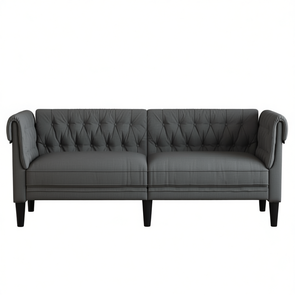 Dark Grey Chesterfield Sofa Three Seat Tufted Back Fabric Upholstery Living Room Furniture