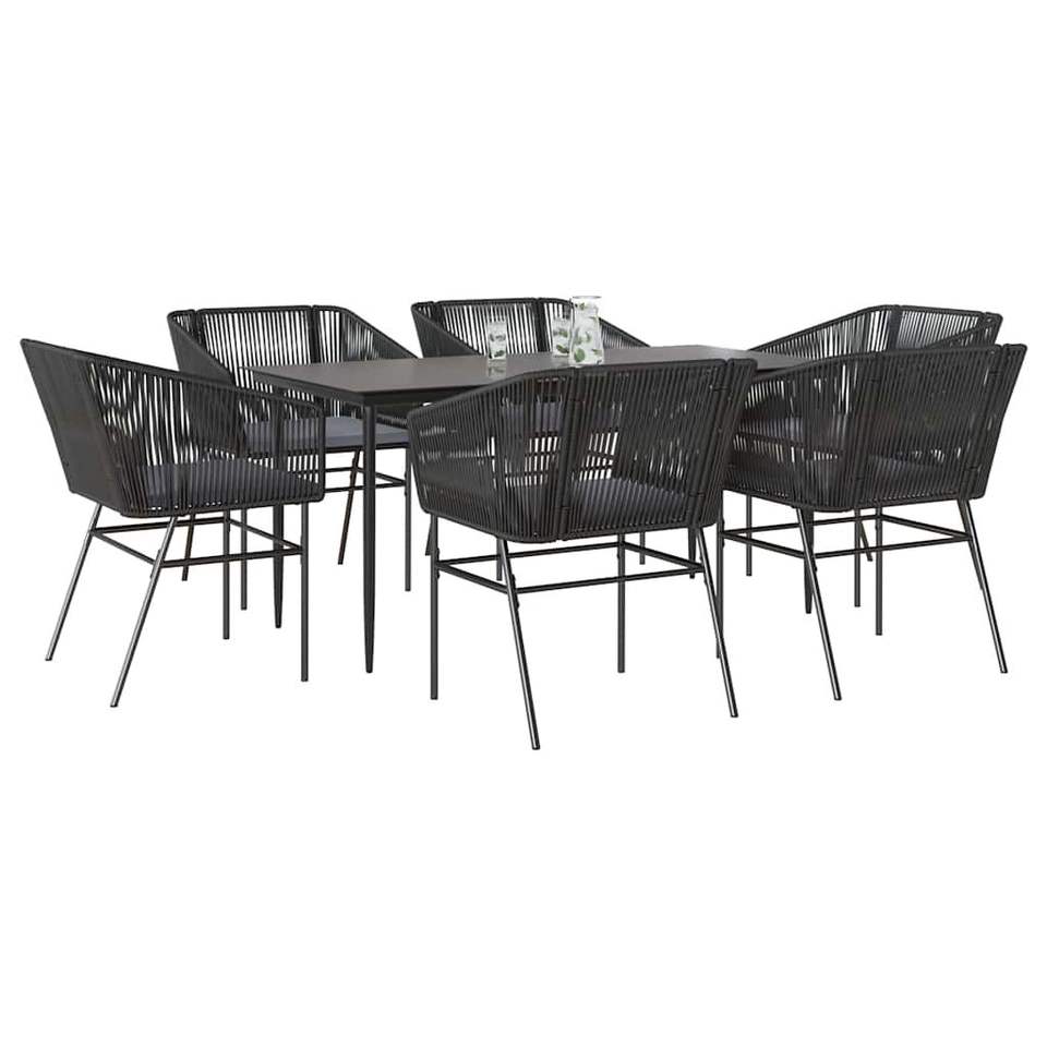 Set da Pranzo da Giardino in Rattan Nero per 6 Persone, Struttura in Metallo, Resistente alle Intemperie, Arredamento da Esterno dal Design Contemporaneo