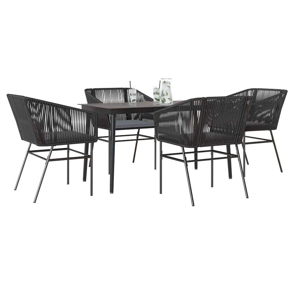 Set da Pranzo da Giardino Grigio Scuro per 4 Persone, Struttura in Rattan e Metallo, Arredamento Esterno Contemporaneo Resistente alle Intemperie