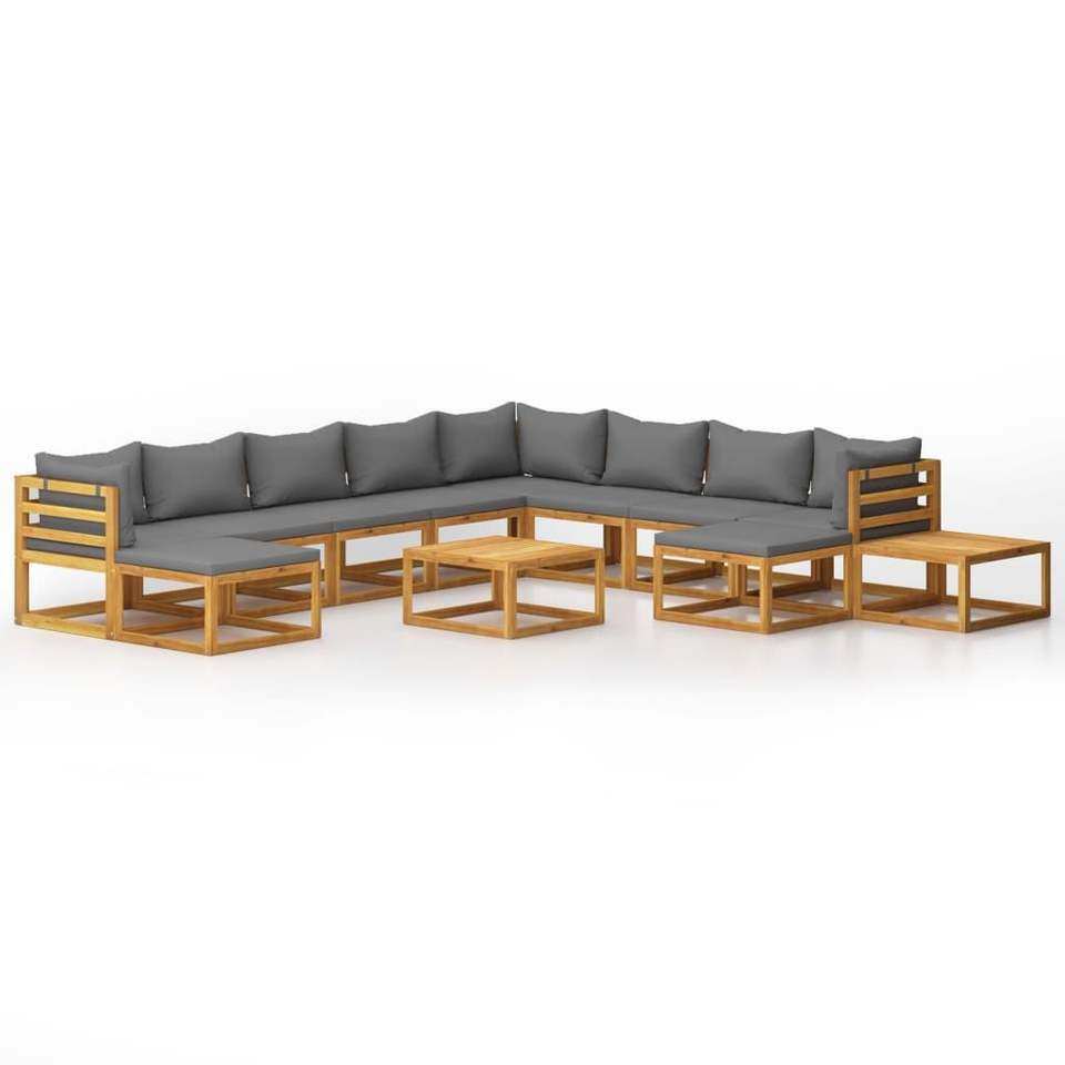 Set Lounge da Giardino Grigio Scuro in Legno Naturale, Arredamento da Esterno dal Design Contemporaneo, 10 Posti