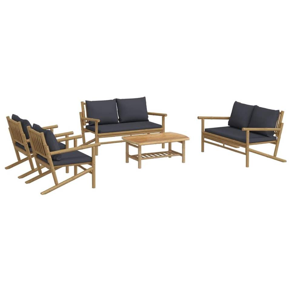 Set Lounge da Giardino Grigio Scuro con Struttura in Bambù Naturale, Mobili da Esterno Resistenti alle Intemperie per Patio e Giardino