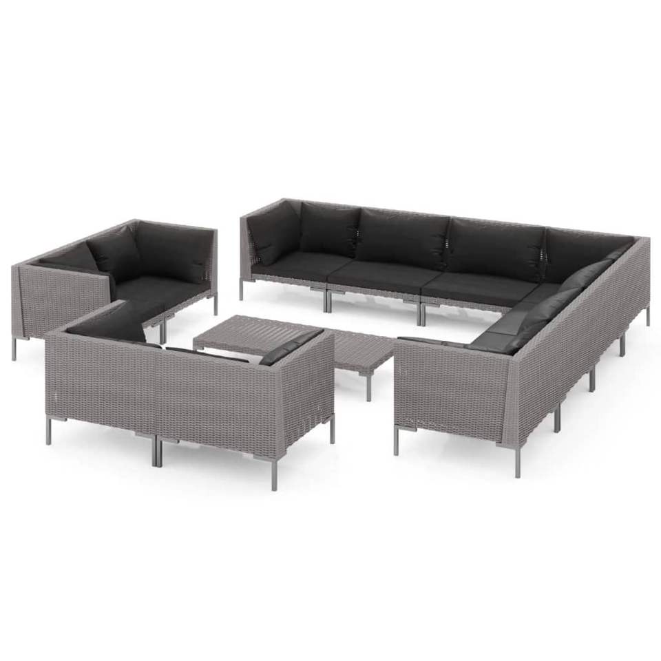 Set Lounge da Giardino in Rattan Grigio Scuro 6 Posti Arredamento da Esterno Design Contemporaneo