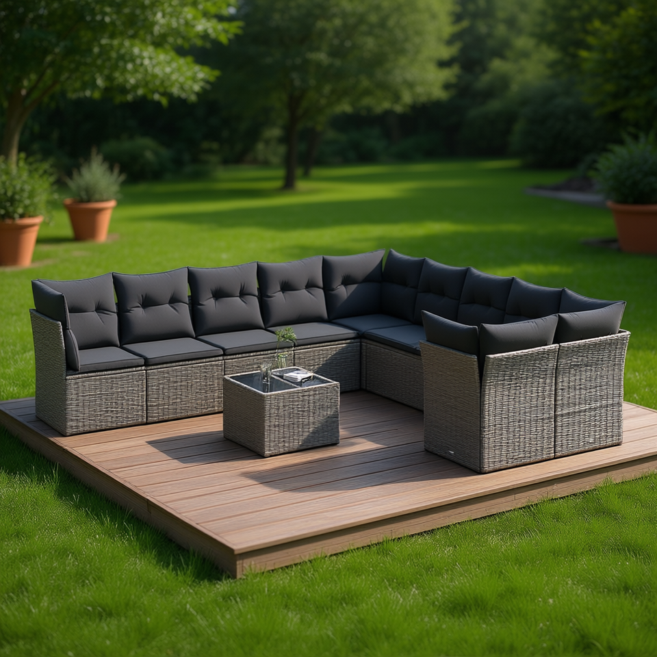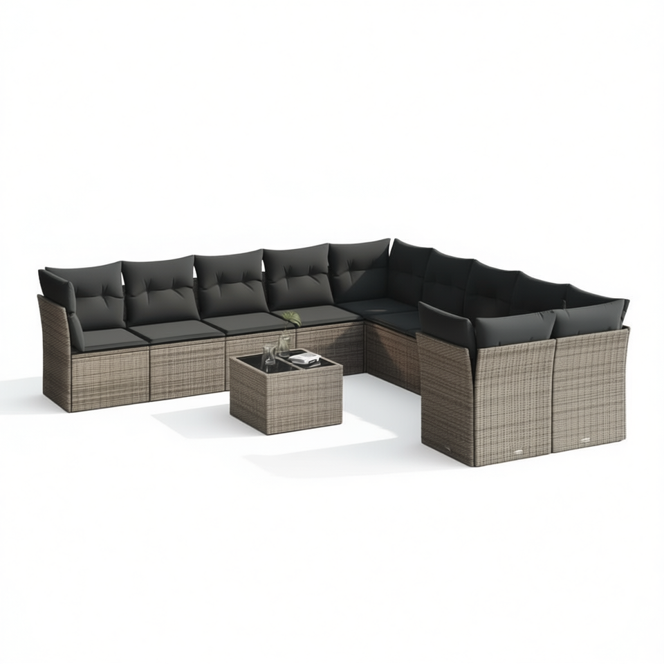 Set Divano da Giardino in Rattan Grigio Scuro 10+ Posti, Resistente alle Intemperie, Arredamento da Esterno dal Design Contemporaneo