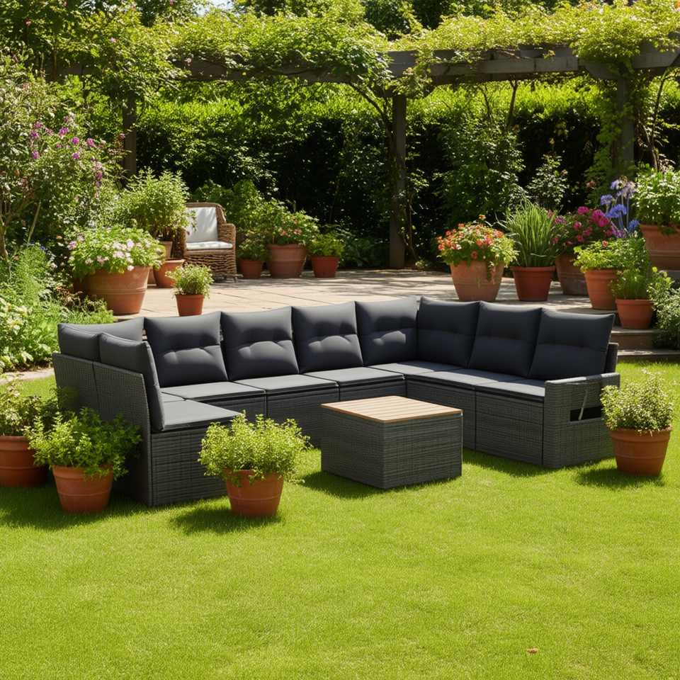 Set Divano da Giardino in Rattan Grigio Scuro 6 Posti Design Contemporaneo per Esterni