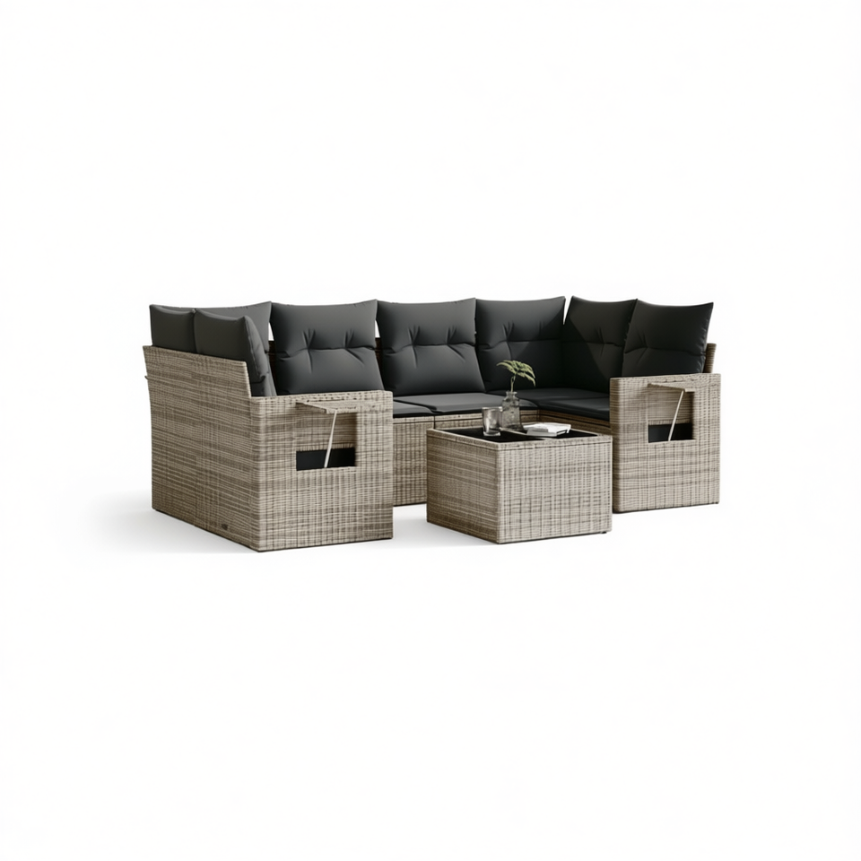 Set Divano da Giardino in Rattan 6 Posti Resistente alle Intemperie Arredamento da Esterno Design Contemporaneo